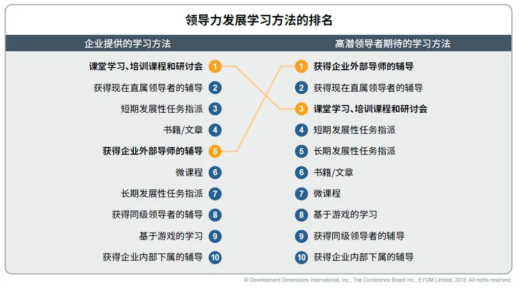中国:企业提供的领导力发展学习方法与高潜领导者所期待的不匹配
