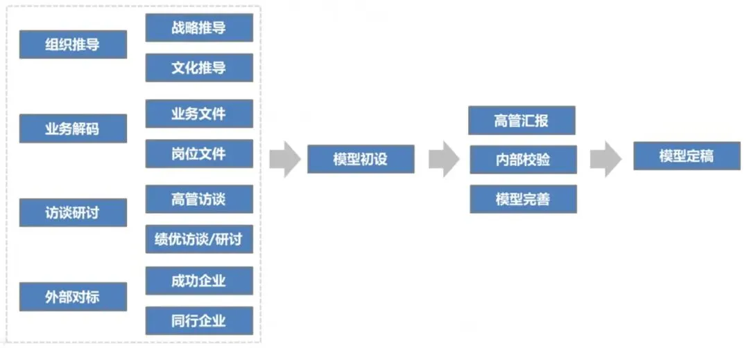 在定义了模型之后,下一步就是对现状进行盘点,对管理层的盘点,我们能够精准定位到能力的差距,能够针对性进行培养和提升。评现状的主要流程分为前、中、后三个部分。