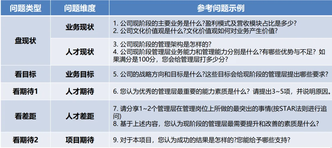 在高管访谈环节中,建议访谈对象是本部门的一把手,本岗位的直属领导,2~4人即可。