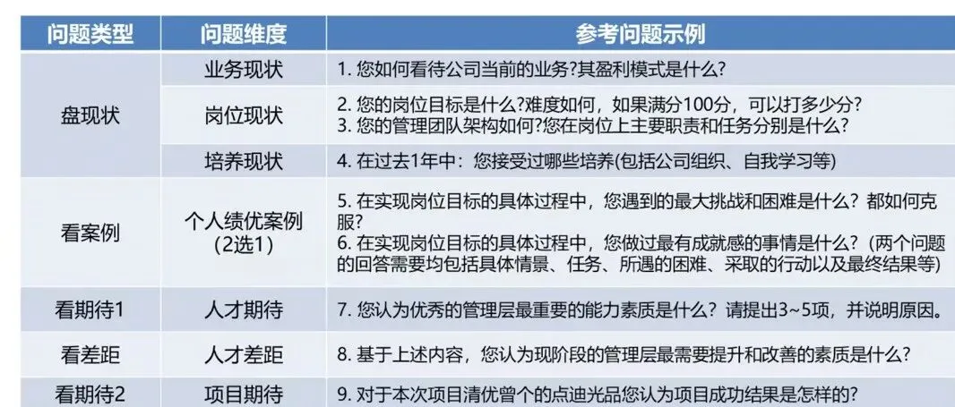 在访谈绩优人员时,可以选择本部门近1~2年绩优TOP 20%的人员,建议访谈4~8人。