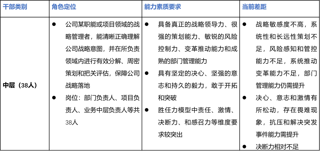 该层级领导者应具备什么能力?能力应到什么程度?工作中应当有怎样的管理行为表现?只有将标准定义清楚,我们才能有的放矢,明确培养方向和目标。