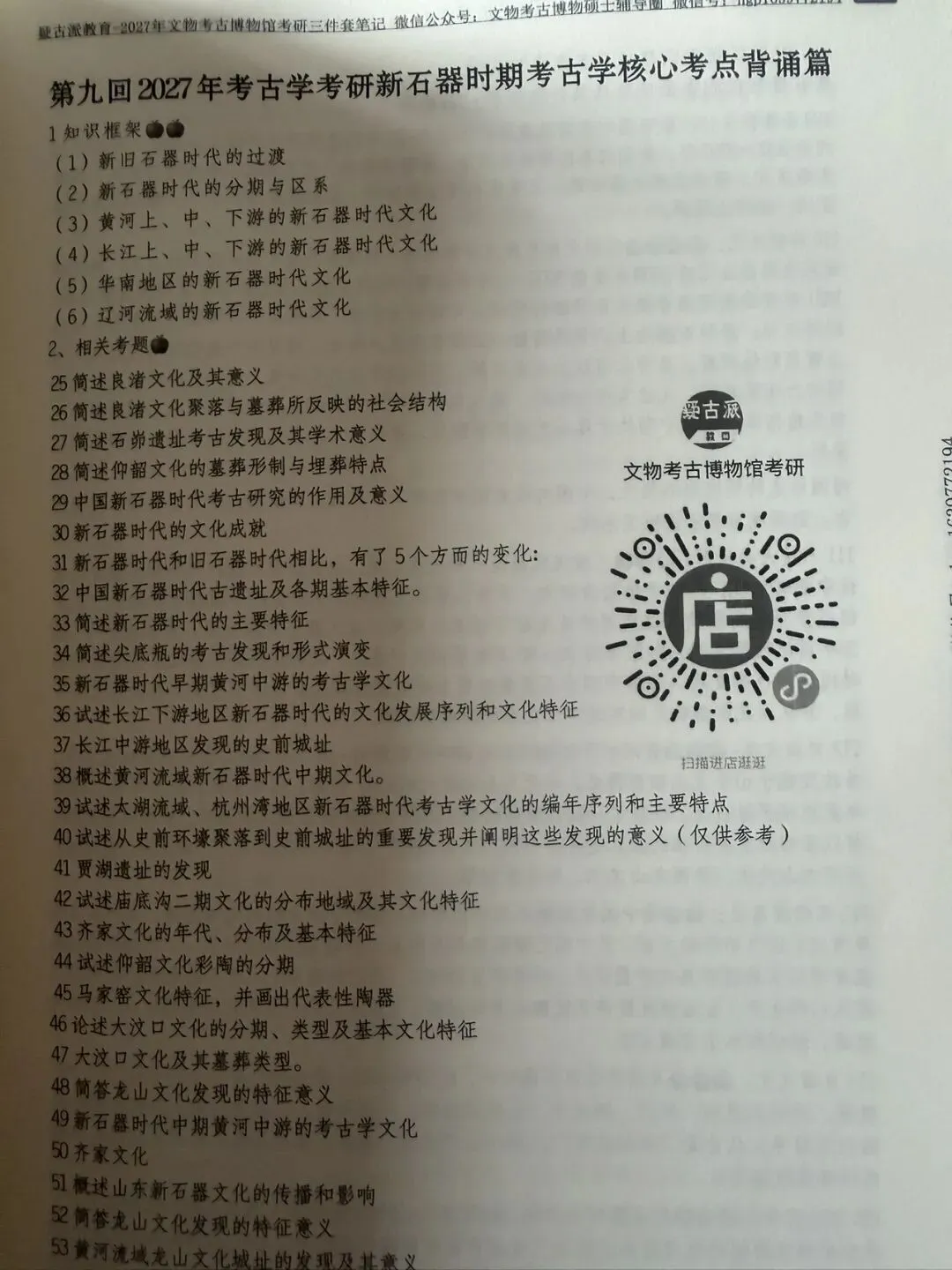 2027年考古学考研三件套笔记出售链接二维码