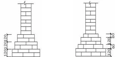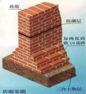 ①砖基础的剖面为阶梯形,称为放脚。
