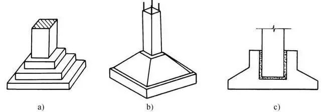 (1)独立基础(单独基础):形式有台阶形、锥形、杯形等。