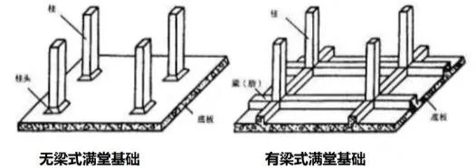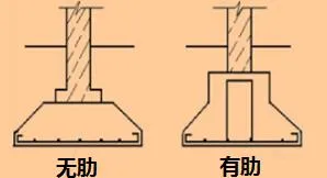 ②墙下:无肋、肋式(肋就是小梁,作用是增加基础整体性、减少不均匀沉降,不是为了美观)