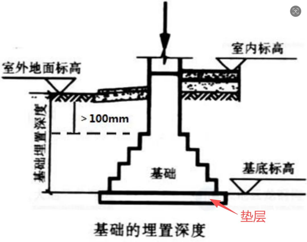 定义 | 从室外设计地面至基础底面的垂直距离称为基础的埋深。 |