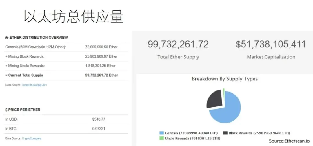 可以看出,以太坊总量中,大部分都是pre-mining的以太币,也就是说早期开发者囤积的占比很大。