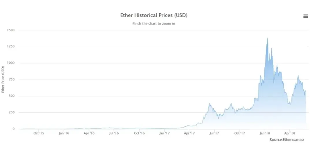 以太坊的价格,18年到过1300美元左右,今天的价格才2350美元。