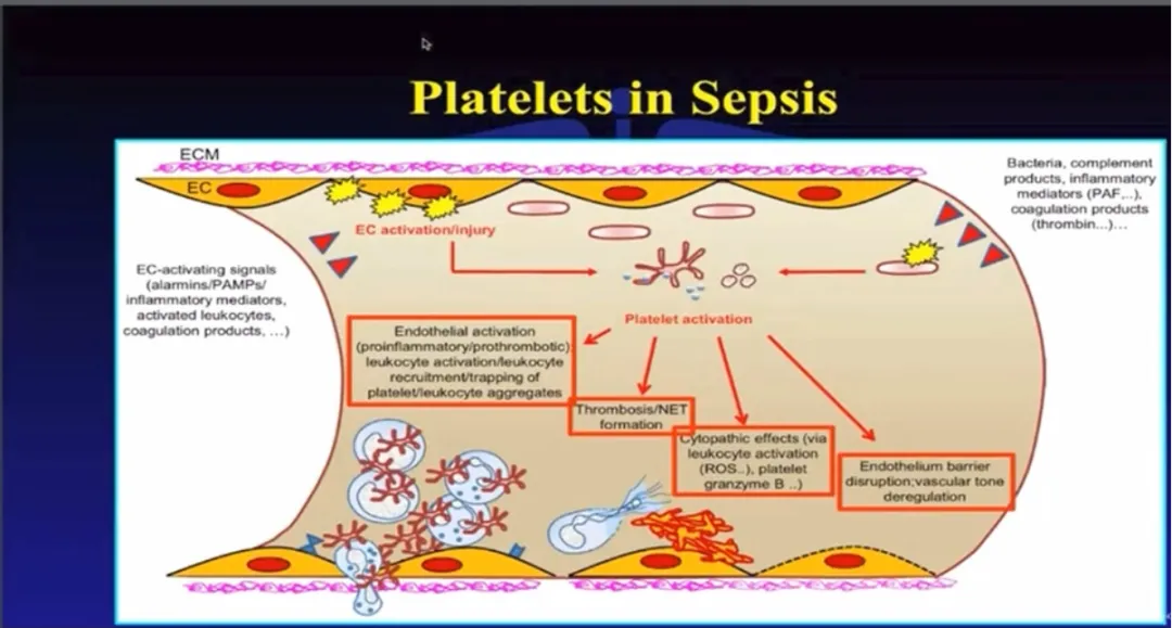 还有血小板,咱们把血小板跟出凝血那个问题分开说,就是因为说到这,因为咱不是在讲出凝血的时候,咱把血小板这个东西拿出来专门来说的话,即便他不在出凝血那边出事的话,大家注意到它在炎症方面也是起到非常重要的作用的。