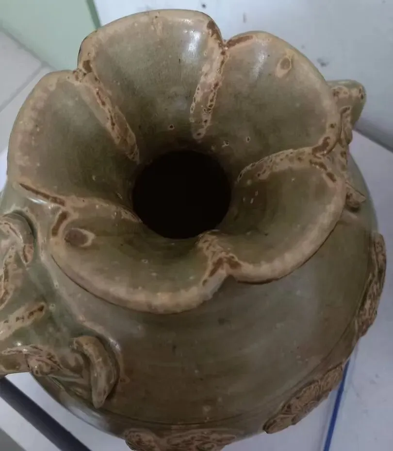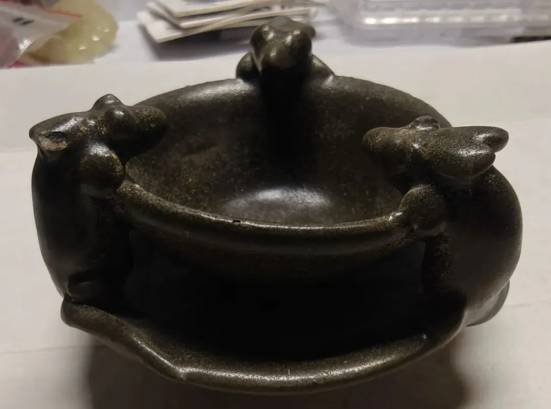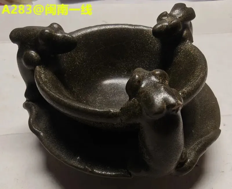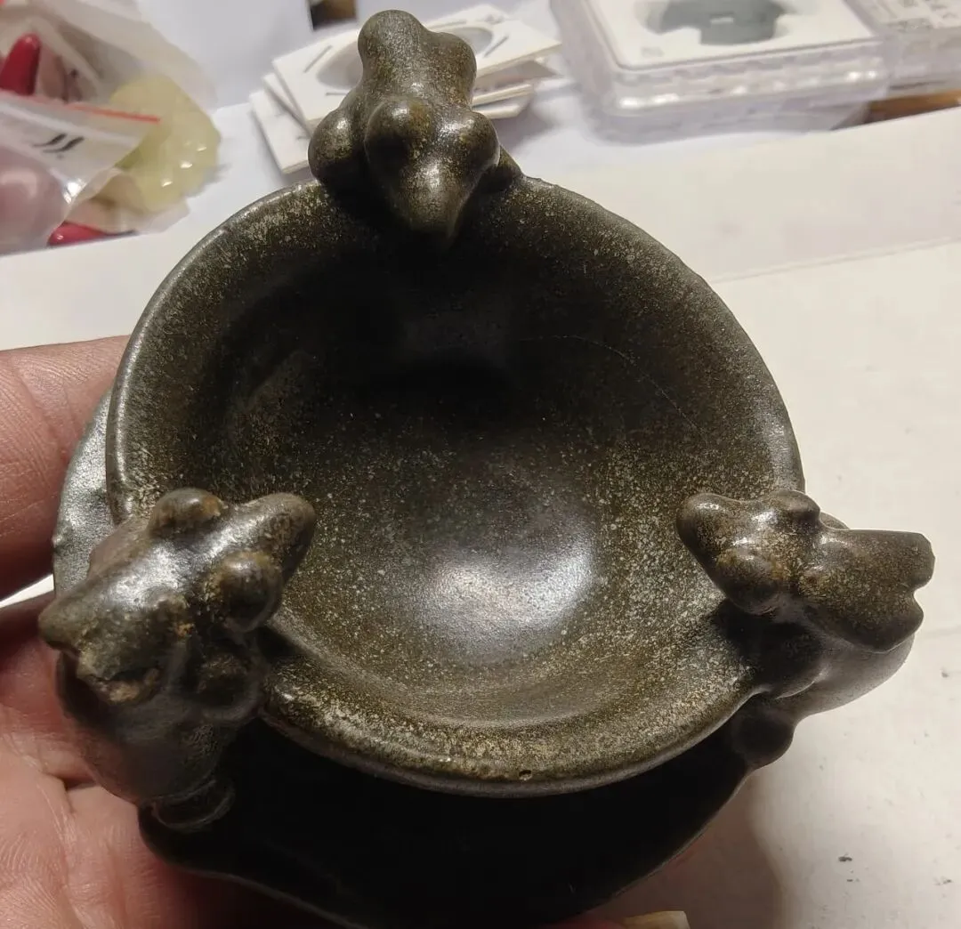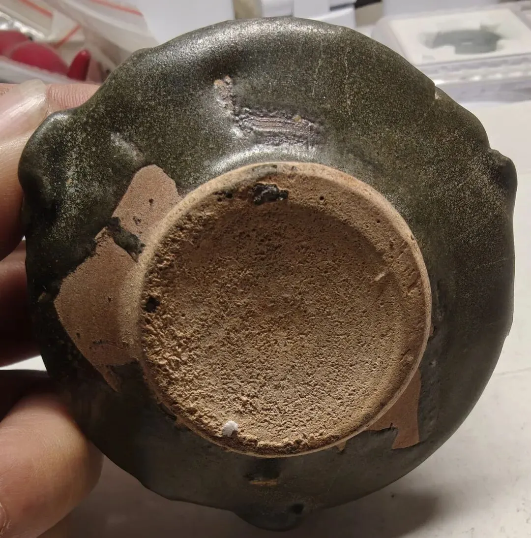 第三件景德镇窑青白釉点彩花卉碗,凭图判断为南宋真品。第六件天青釉地粉彩花卉花盆及盆托,凭图判断为清中真品。第三件(倾向于)鲁山窑仿汝刻花梅瓶,凭图判断为金代真品。第四件磁州窑(系)茶叶末釉贴老鼠省油灯,凭图判断为北宋真品。第五件磁州窑系黑釉铁锈花线条碗,凭图判断为金代真品。第六件磁州窑系黑釉长颈瓶,凭图初步判断为金代真品。第二件定窑绿釉剔刻莲瓣纹内刻龙纹碗,凭图判断为现在仿品。友情提醒: