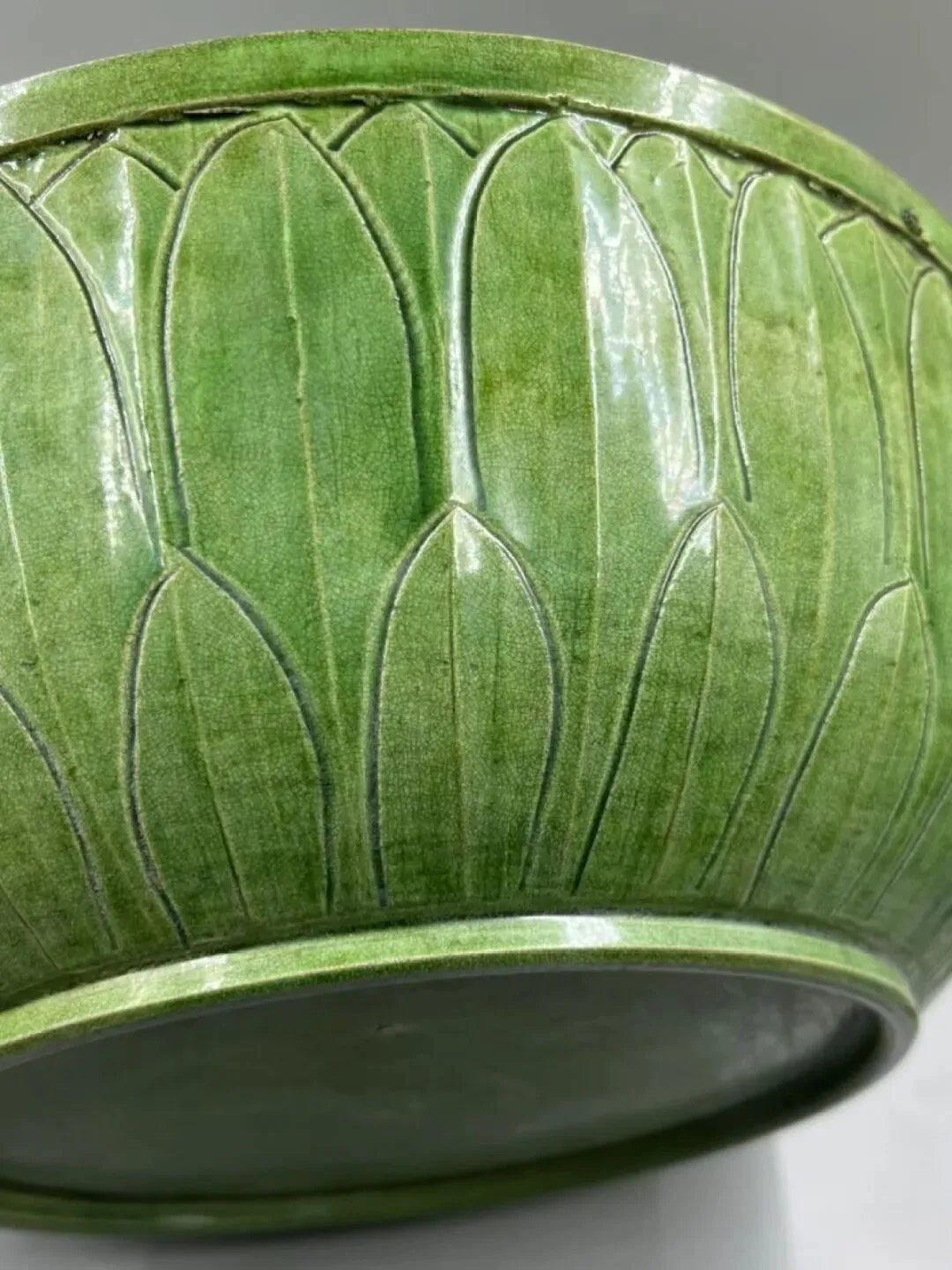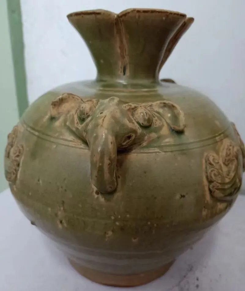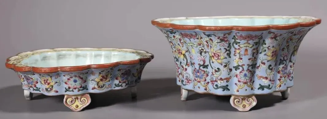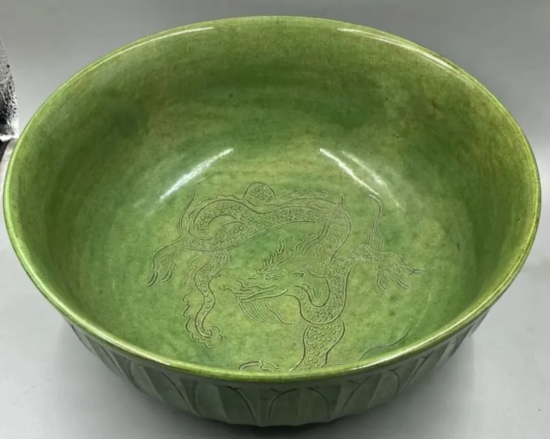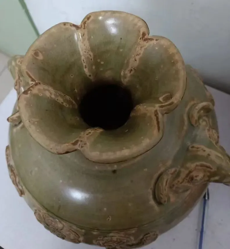 第三件景德镇窑青白釉点彩花卉碗,凭图判断为南宋真品。第六件天青釉地粉彩花卉花盆及盆托,凭图判断为清中真品。第三件(倾向于)鲁山窑仿汝刻花梅瓶,凭图判断为金代真品。第四件磁州窑(系)茶叶末釉贴老鼠省油灯,凭图判断为北宋真品。第五件磁州窑系黑釉铁锈花线条碗,凭图判断为金代真品。第六件磁州窑系黑釉长颈瓶,凭图初步判断为金代真品。第二件定窑绿釉剔刻莲瓣纹内刻龙纹碗,凭图判断为现在仿品。友情提醒: