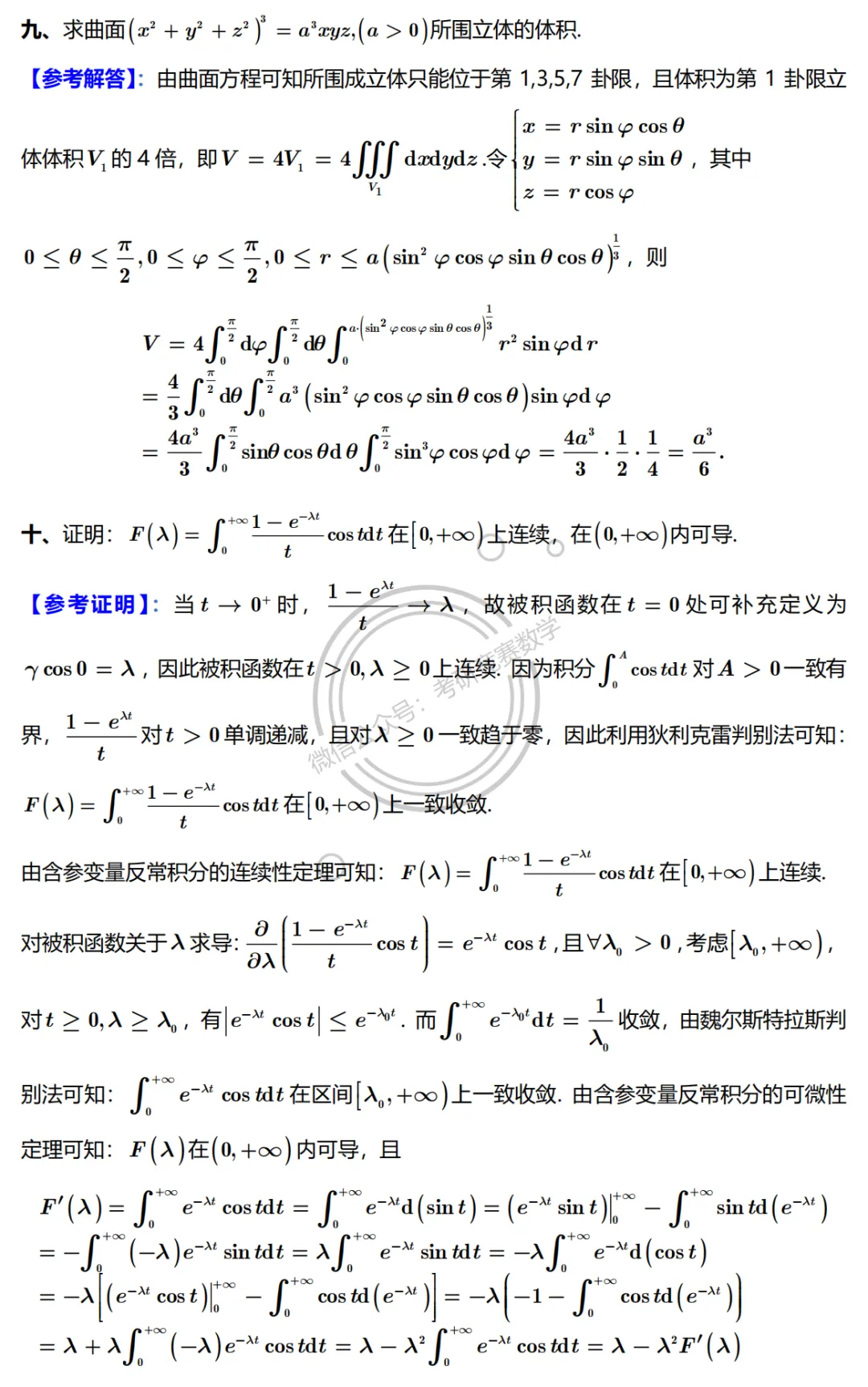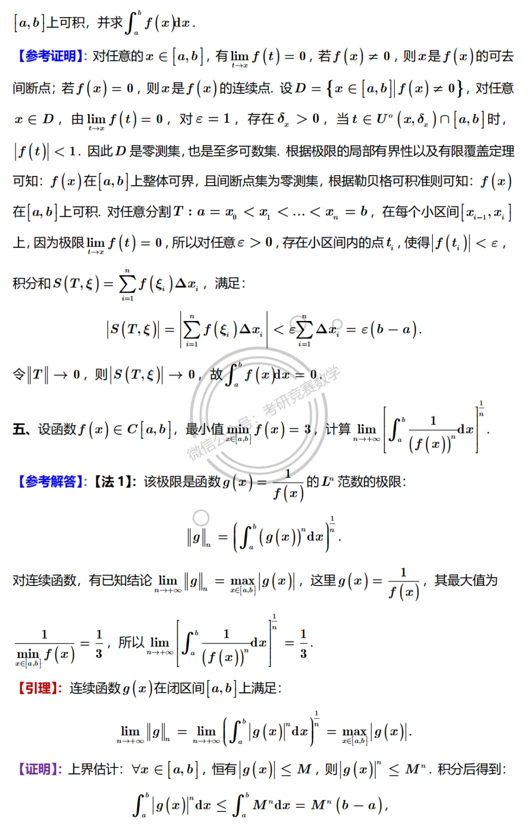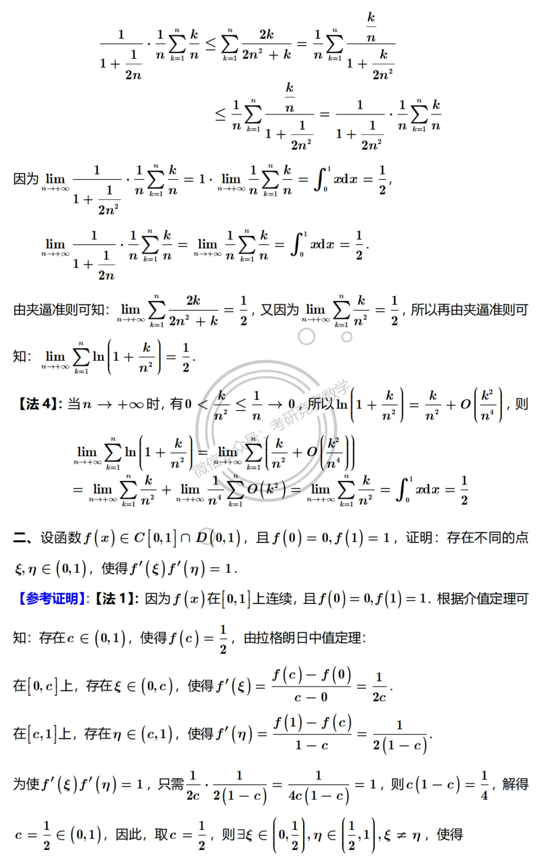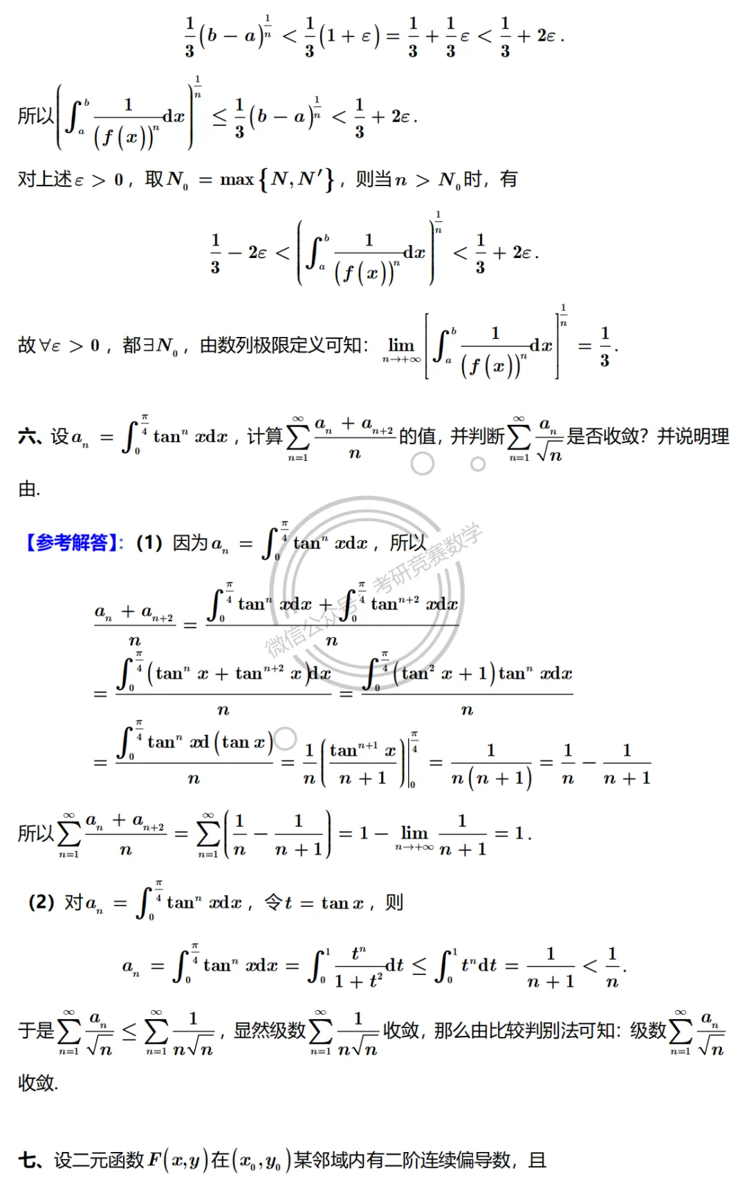 【注1】试题与参考解析由热心学友萱宝儿整理分享,试题来源于网络分享,相关题目可能略有改动,内容是否完整对应相应年份的题目,希望知晓的学友能够进行核验!试题和解答分享仅供学习交流,如题目或解答来源原出处不允许分享,请联系删除或修改,谢谢!建议(一定)自己在草稿纸上动手做完以后再参考下面给出的参考答案!更多综合、提高典题型及详细参考解答(多解)参看高数、数分综合提高练习册,点击推文链接:高等数学、数学分析综合提高练习册:竞赛、考研、课程学习,有这一套就够了 了解详情!