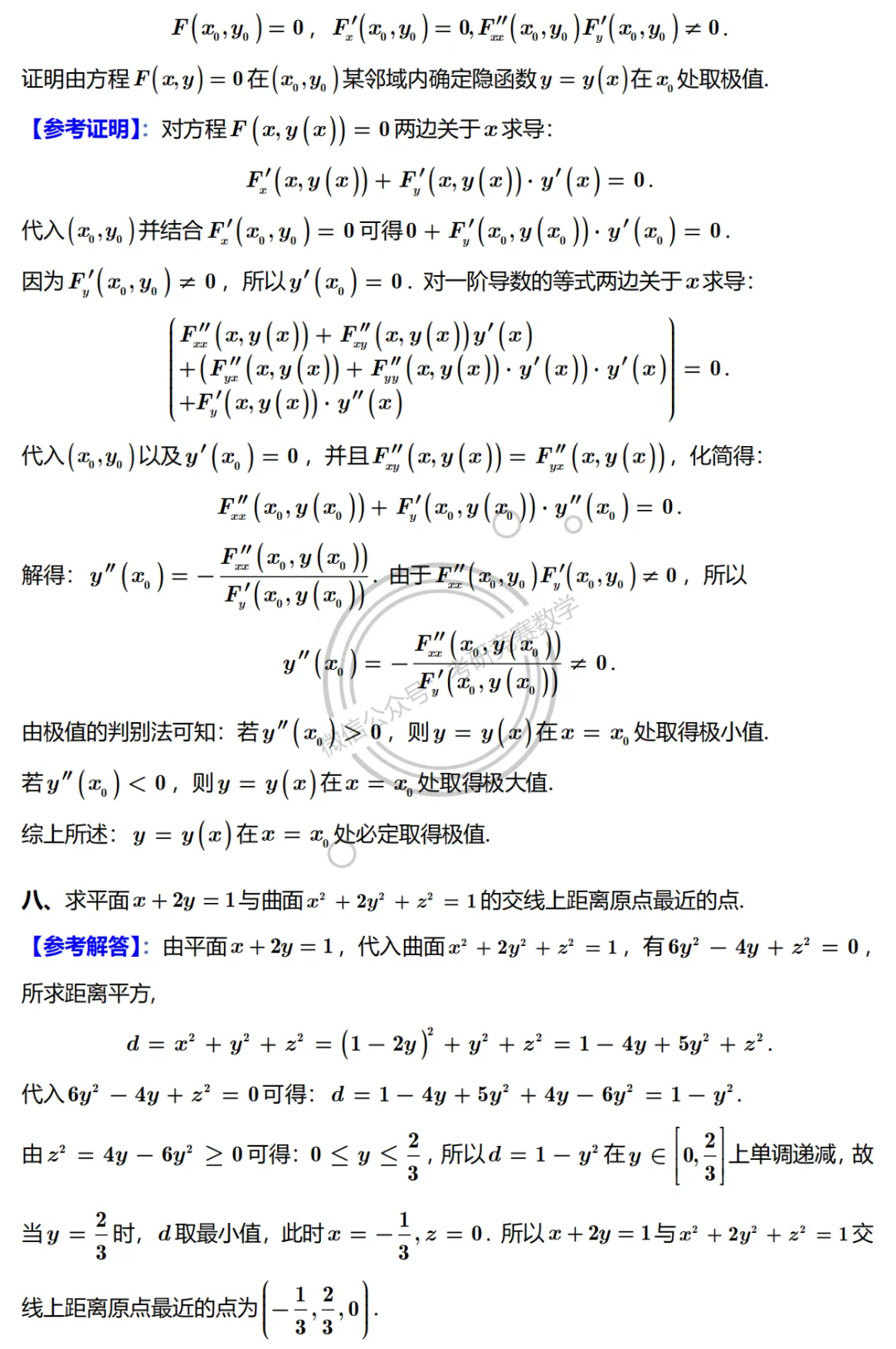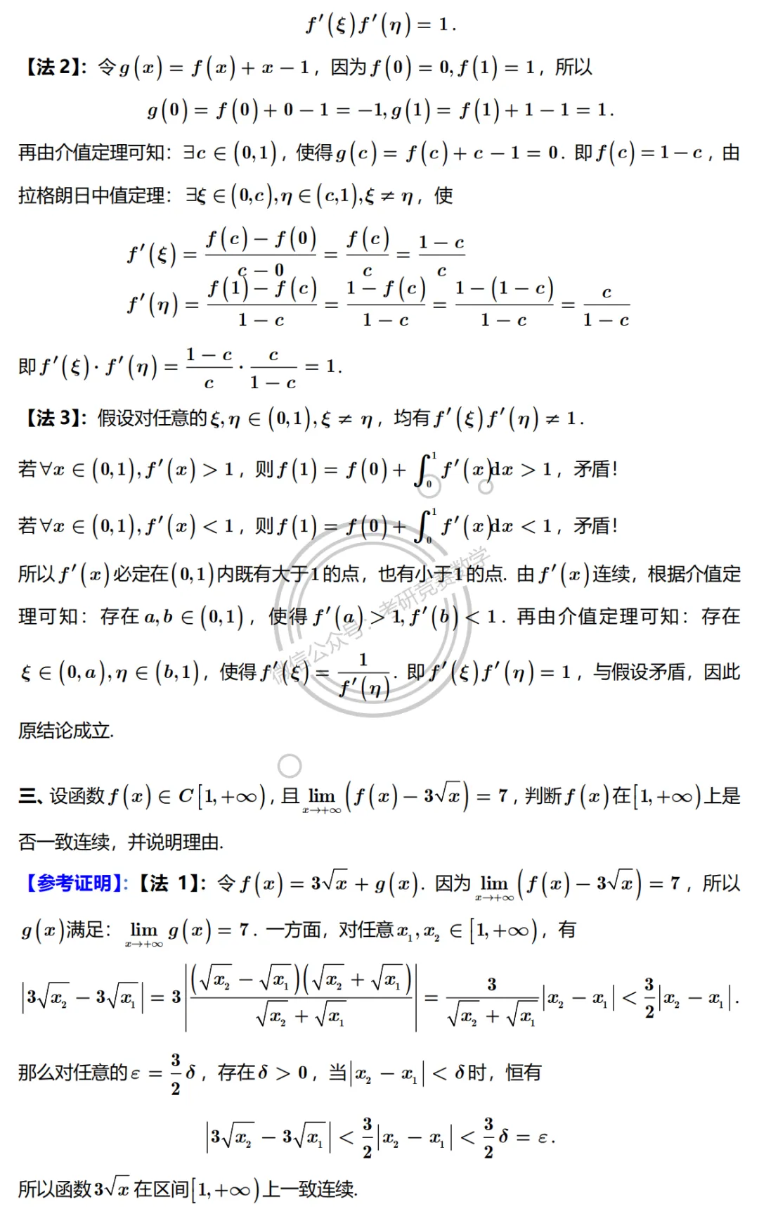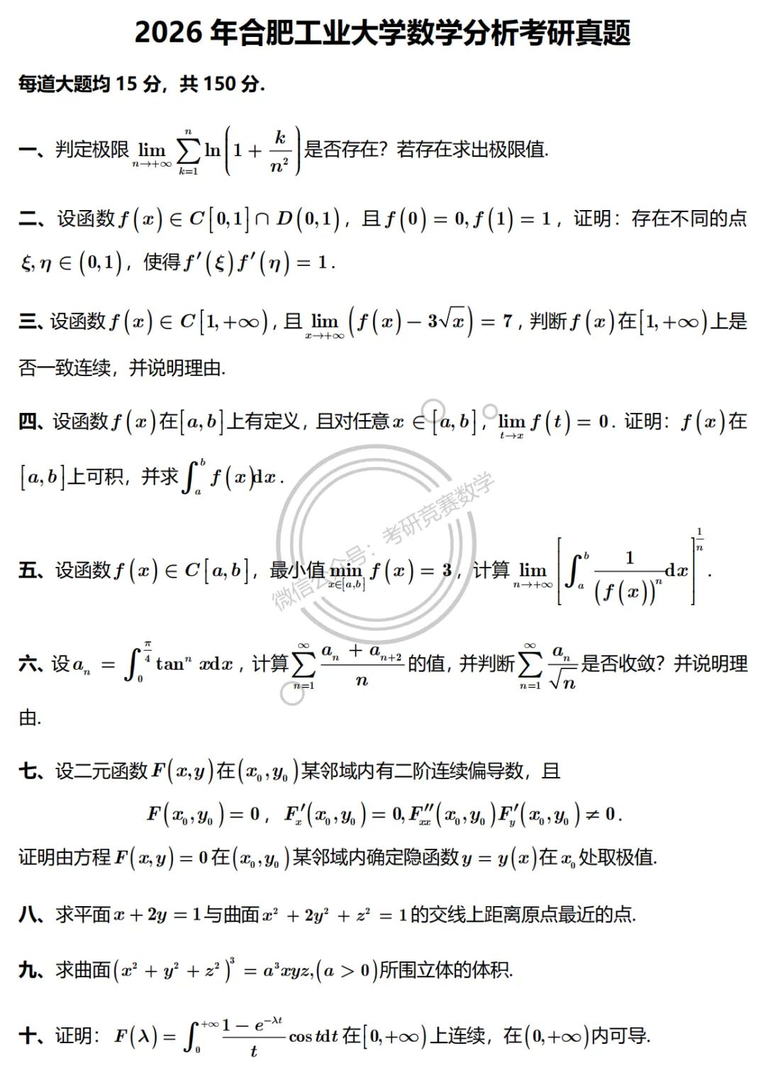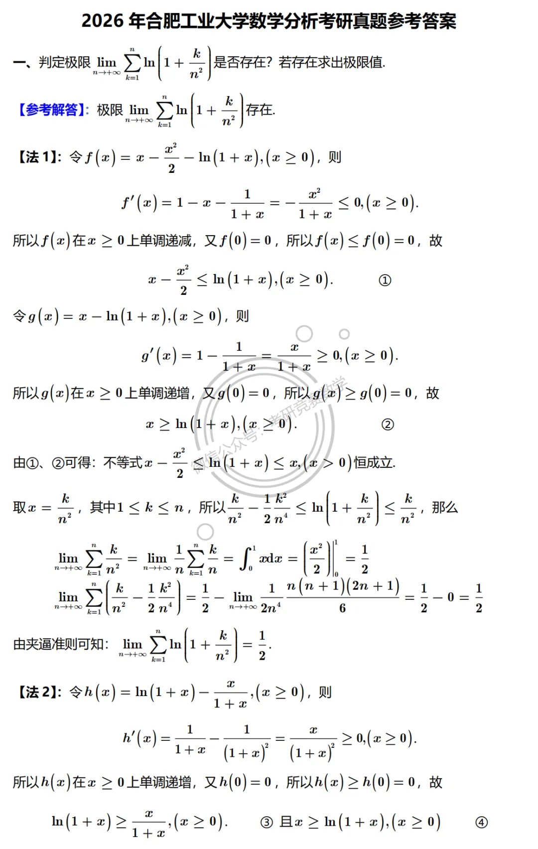 【注1】试题与参考解析由热心学友萱宝儿整理分享,试题来源于网络分享,相关题目可能略有改动,内容是否完整对应相应年份的题目,希望知晓的学友能够进行核验!试题和解答分享仅供学习交流,如题目或解答来源原出处不允许分享,请联系删除或修改,谢谢!建议(一定)自己在草稿纸上动手做完以后再参考下面给出的参考答案!更多综合、提高典题型及详细参考解答(多解)参看高数、数分综合提高练习册,点击推文链接:高等数学、数学分析综合提高练习册:竞赛、考研、课程学习,有这一套就够了 了解详情!
