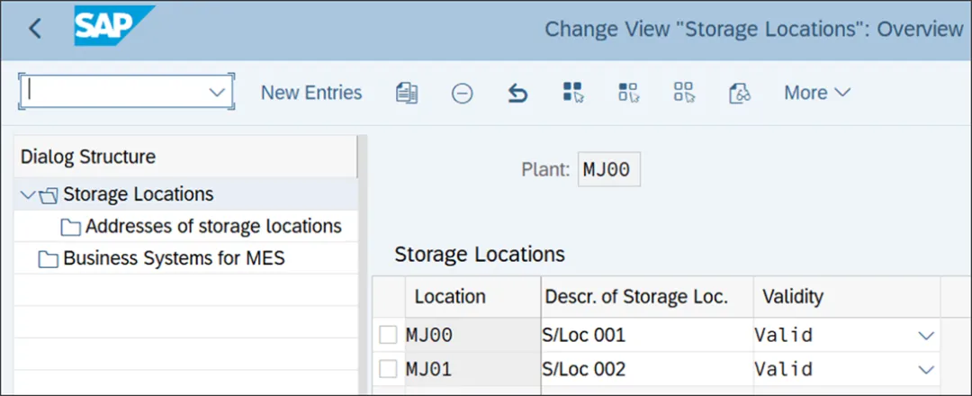 物料管理有助于控制和执行采购活动及库存管理。组织架构包含四个组织单元:工厂、存储地点、采购组织和采购组。下图展示了物料管理的组织结构。让我们详细探讨物料管理中的组织单元。存储地点是工厂内用于存储和管理库存的特定物理位置。它是工厂的一个细分部分,在库存管理和仓库管理中起着至关重要的作用。存储地点用于跟踪物料的库存水平,以及跟踪物料在工厂内部和不同工厂之间的移动情况。通过在SAP中使用存储地点,可以轻松跟踪工厂内的物料。在库存管理和仓库管理中,任何物料移动交易都必须输入存储地点。要在工厂内维护存储地点,请执行事务代码SPRO,然后导航至企业结构 • 定义 • 物料管理 • 维护存储地点。下图显示了在工厂MJ00内维护了存储地点MJ00和MJ01。点击“新条目”来维护新的存储地点,或者复制现有的存储地点进行编辑。为存储地点定义一个四位的唯一字母数字或数字键。该字段包含四位的存储地点ID。您可以根据业务需求在工厂内维护多个存储地点。在该字段中,您可以将存储地点的状态设置为以下之一:如果设置此状态,则可以使用该存储地点过账库存移动。如果设置此状态,则不能使用该存储地点过账库存移动,并且该地点对用户不可见。如果设置此状态,则该存储地点将来不能再使用。如果您选择具有此状态的存储地点来过账库存移动,系统将显示警告消息。如果您维护了存储地点的地址,在采购订单中,该地址将优先于工厂地址,并且存储地点的地址将成为采购订单项目的交货地址。你若喜欢,点个❤️谢先👇