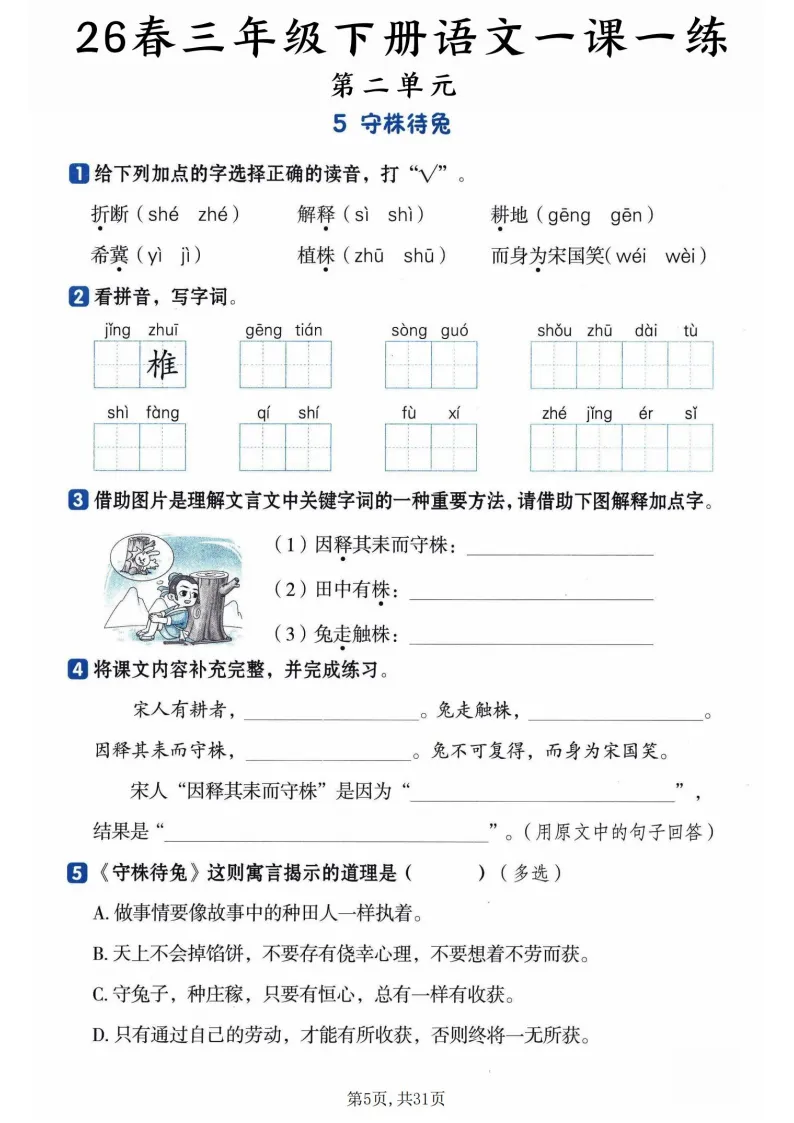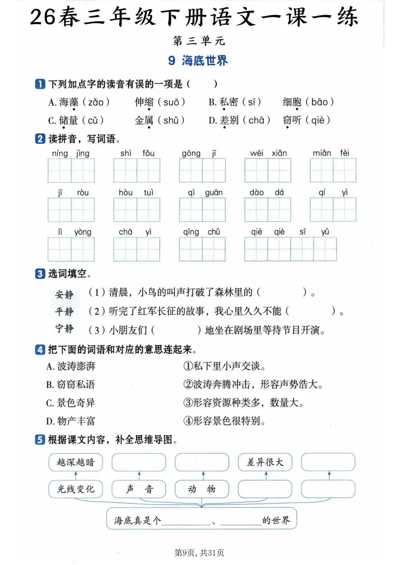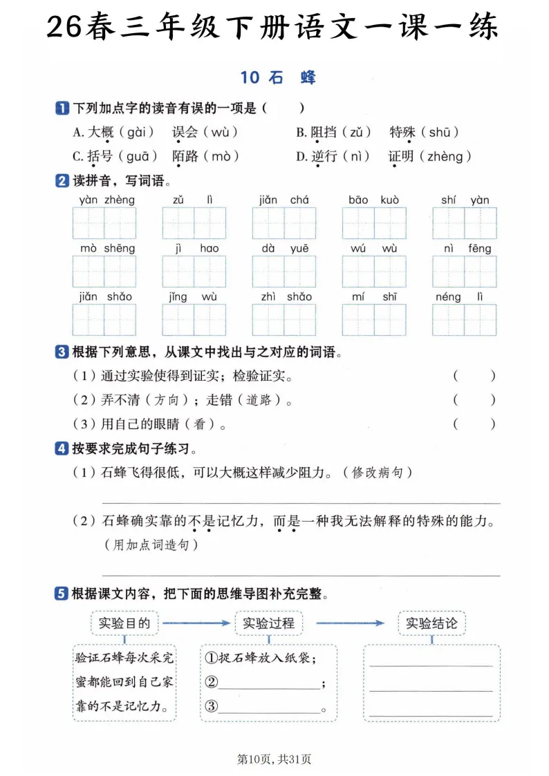 家有三年级娃的宝妈/语文老师看过来!这份26春三年级下册语文一课一练教学学习资源,直接把课堂效率拉满~
