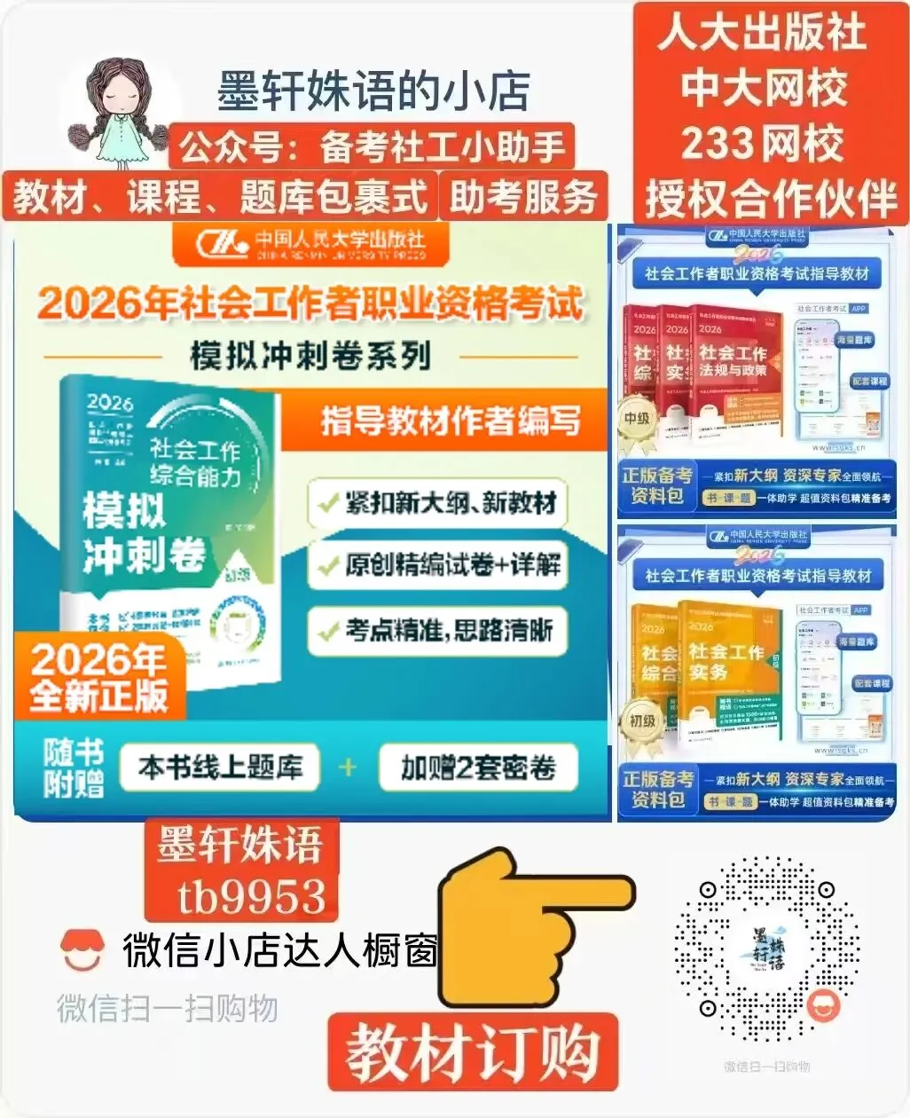 小编是谁?自述:墨轩姝语(tb9953),2023年直接报考社工中级并顺利拿证、喜欢以学习对抗虚无的打工人。社工小白,等待备考社工高级,不放弃对社工知识的学习,希望温故而知新,愿能与社工伙伴一路同行、交流备考,共同成长!
