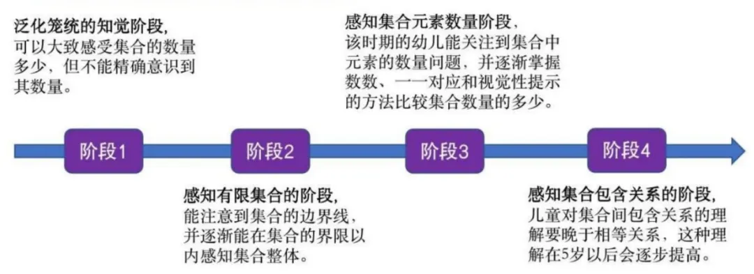 《学前儿童数学学习与发展核心经验》是华师大团队出版的核心经验系列书籍之一,由黄瑾、田方老师主编。本书结合《指南》数学领域目标,从集合与模式、数与运算、比较与测量、几何与空间四大核心经验,详细介绍了儿童数学领域核心经验的发展。本书共十章,第一章为绪论,后九章为核心经验阐释。具有某种相同属性的事物的全体。集合的归并是以对象所具有的共同属性为条件的。如:水果的集合、交通工具的集合、铃声的集合。把一组具有共同属性的对象看成一个整体就形成了一个集合。1. 集合是幼儿思考和学习的基础,尤其是幼儿形成数概念系统的基础。数数是需要以集合为基础的,如:数苹果,需要把苹果和梨子、橙子区分。在数学启蒙教育中,以具体集合概念和一一对应作为感性基础,利用幼儿已有的生活经验和周围环境进行有关集合的比较和感知,有利于幼儿理解数概念的形成以及理解数的组合分解、加减运算。分类:将一组事物按照特定的标准加以区分,并进行归类的过程。分类是观察和比较过程的延伸和应用,也是一种认知能力。如:《指南》——具有初步的探究能力——3-4岁发现明显特征、4-5岁观察比较、5-6岁观察比较与分析。分类:儿童对集合进行区分的过程、是其集合思想的体现。分类——数学能力、数学活动的角度描述。集合:分类活动的基础,对集合的区分和合并称为分类。集合——数学概念、数学思想的角度描述。1. 物体的属性可用来对物体进行匹配、分类,组成不同的集合。 同一个物体,充满了不同的属性,如颜色、大小、形状、材质、功用、数量等等,对属性特征的关注可以开展多个匹配、分类或数数的活动。引发儿童关注属性特征的最简单的活动是匹配,如:“找朋友”、袜子配对。在匹配基础上引发儿童进一步关注属性特征的活动是分类。如:二分法分类(一种有相同的属性、另一类则没有这一属性;集合属性是一组相反的概念)。常见玩法:人物分类,让孩子运用自己的身体参与其中,感知和熟悉分类的过程。(如:大风吹的游戏,涉及匹配,关注其特征)匹配是分类的基础,分类比匹配更重要,它是儿童集合概念认知的典型性能力表现。实际从儿童思维层次来说,只是匹配而不是分类;分类能力,属性特征是孩子自己去区分和发现的,而不是教师预设的。分类的多样性预示着幼儿思维的抽象性和变通性反应。对幼儿来说,要理解分类的多样并不容易,因为这要求他们能够发现一个物体的不同特征。一般说来,物体可以被用来进行分类的方式通常有以下几种:按物体的名称分类——把相同名称的物体放在一起。如把书放在一起,笔放在一起。按物体的外部特征分类——按物体的颜色、形状等。如很多气球中,按颜色不同,将黄气球放在一起,蓝气球放在一起;按形状不同,将椭圆形的气球放在一起,长条形的气球放在一起。按物体量的差异分类——按物体大小、长短、粗细、厚薄、宽窄、轻重等量的差异分类。如把大的气球和小气球分别放在两个筐里。按物体的用途分类——如把笔、本子、手工剪刀、铅画纸等归成一类,它们都是文化用品。把毛巾、牙刷、茶杯等归成类,都是生活用品。按物体的材料分类——如将塑料做的花片、小碗、玩具等归成一类;将木头做的积木、玩具小厨等归成一类;将布做的娃娃、衣服、裤子等归成一类。按物体的数量分类——如把数量只有一个的物品放在一起,把数量为两个、三个的归放在一起等。按事物间的关系分类——如在一堆动物与食物中,将小兔与萝卜放在一起,猴子与香蕉放在一起等。当一个整体被分成不同的集合或小组时,幼儿和成人一样都倾向于本能地会去进行比较。五岁大的幼儿常常会喜欢关注日常生活中有关数量的问题,数量比较涉及集合中的三种数量关系:多、少、一样多。集合数量比较的方法:一一对应、目测、数数。集合之间的关系:包含关系、相等关系、运算关系(交集、并集、差集、补集)儿童能够判断小的集合的数量(2和3);儿童还不会数数,但会倾向于去拿多的糖果。儿童对数概念有笼统和泛化的感知,最先发展的是辨数能力,其次才是认数和点数能力。这个过程通常表现在3岁左右的儿童身上。空间封闭式排列的集合数图比直线式排列的数图更容易被作为一个结构完整的集合统一体来感知。对于排成一排的数量5的物体集合,幼儿对排在第一个、最后一个的物体更为关注,而对排在中间的物体缺少注意。儿童已经关注到了集合中元素的数量问题,对结合数量从不精确的感知到确切数数的一个跨越。能够通过点数较正确地数出集合中元素数量的多少,对于直线式排列和空间封闭式排列的数图,前者更容易感知其数量。对4岁儿童来说,一一对应的能力在这个阶段得到发展。比较集合元素数量的方法:数数、一一对应、视觉性提示。数量守恒能力还没有得到很好发展,儿童更倾向于用视觉提示的方法来进行数量比较。儿童对于包含关系的理解往往要晚于相等关系。比如:类包含关系,花多还是白花多,儿童可能不理解花和白花之间的类包含关系。1.能根据事物的表面的、具体和简单的特征进行分类。如:颜色、形状等。2.能根据事物较内部的特征来对事物进行抽象概括,但脱离不了具体的情景和功用。4岁以后幼儿一般能够根据事物较内部特征进行分类。成人特别注意不能