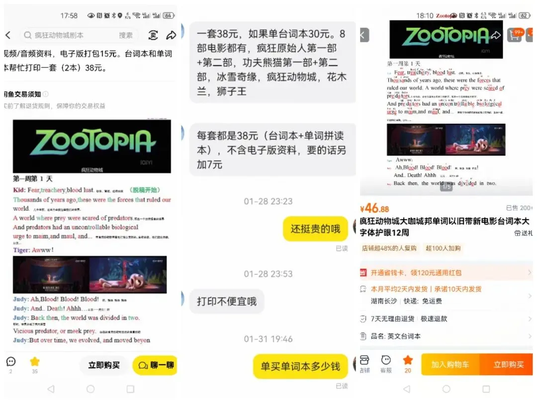上周我分享了一篇寒假陪娃看动画大电影的文章精选10部超适合寒假在家陪娃看的动画电影,我们也选了一部超有人气的《疯狂动物城1》来看,看完之后我想把台词本打印出来给娃儿们有空的时候读一读,本想省点心直接买个现成的,去某鱼搜了,有点小贵,然后又去某宝看到了更合适更喜欢的版本,除了贵没毛病(评论区一致评论),就个台词本,确实有点贵啵,于是三下五除二做了个决定,自己搞!