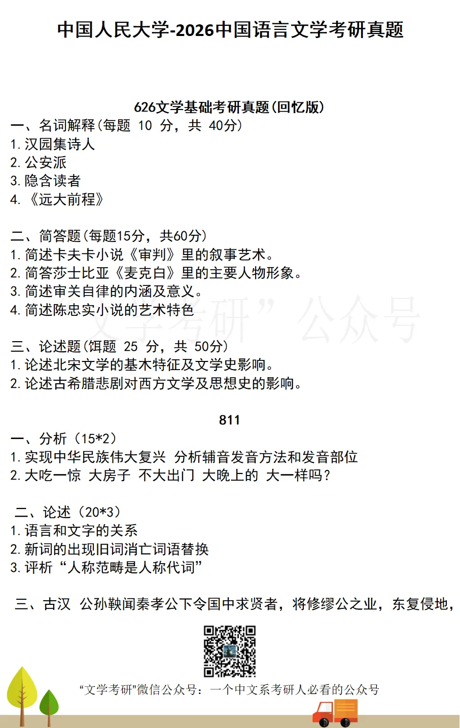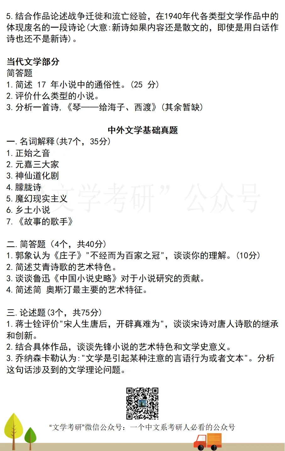 回复“真题”,可下载各大高校文学考研历年真题;