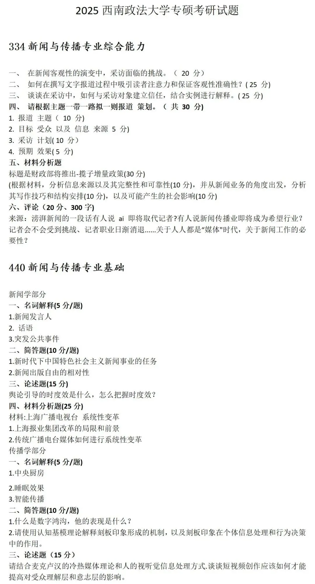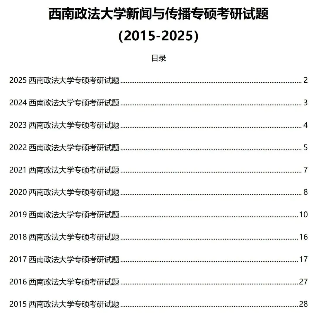 西南政法大学新闻与传播2015-2025历年考研真题已整理好,可直接获取!