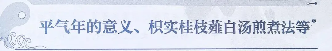 枳实桂枝薤白汤煎煮法:需要五升水,先煮枳实和厚朴,五升水煮取二升,再入薤白、桂枝、瓜蒌,数沸就好。枳实和厚朴都是降阳明的,适用患者下午阳明欲解时不适。