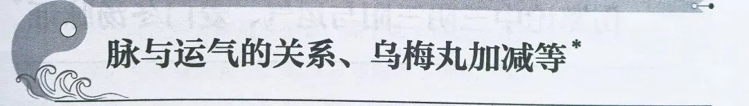 今天顾老师提到同样的脉在不同的时间段表达了不同的意义,左脉沉在去年(2017年)上半年可用苁蓉牛膝汤,下半年可用审平汤,今年可用静顺汤,追本溯源,是天人相应,脉是反映天人关系的窗口。正如《六微旨大论》:“物生其应也,气脉其应也。”今天顾老师晚上聊天后再次谈到,乌梅丸针对后半夜发病的各种疾病都有神效,并且提到了乌梅丸的加减法,可以加黄芪、大黄、当归六黄汤,但是单加生地效果欠佳,这是临床使用后反馈总结的经验。近期腹泻的患者增加,顾老师提出是土气来复,因为前段时间寒气胜,虽然复气是天地的自然调节机制,但不是复气都是有益的,就如同近期的腹泻,如《六微旨大论》有“气有胜复,胜复之作,有德有化,有用有变,变则邪气居之”。范先靖按:不仅仅是脉象,症状也同样是如此,运气思维提示整个的病象都需要结合当时的运气背景来讨论,抛开运气背景谈证候就不是五运六气了。厥阴病欲解时可以用厥阴方来治疗,龙砂流派内常用乌梅丸改汤,其他的厥阴方也能使用。陶国水按:关于运气脉的问题,值得深入研究。实际上南北政脉不应的问题,归根到底就是在论述运气脉的问题,当然这个南北政脉不应的问题,历史上各家也是见仁见智,具体如何指导应用,还是需要进一步结合临床去研究,进而至少在一定范围达成共识。补充:六经病欲解时间规律
