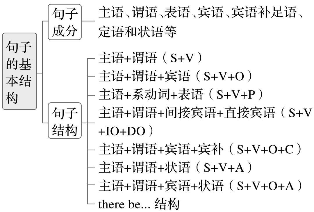 这种简单句表示主语的性质、状态、身份等。英语中的常见系动词有:be动词、感官类动词(look,smell,taste,feel,sound等)、表变化类动词(get,become,turn,go,grow,come等)、表保持类动词(keep,stay,remain等),可充当表语的形式有:形容词、副词、名词、介词短语、不定式、动词-ing形式、过去分词和从句。
