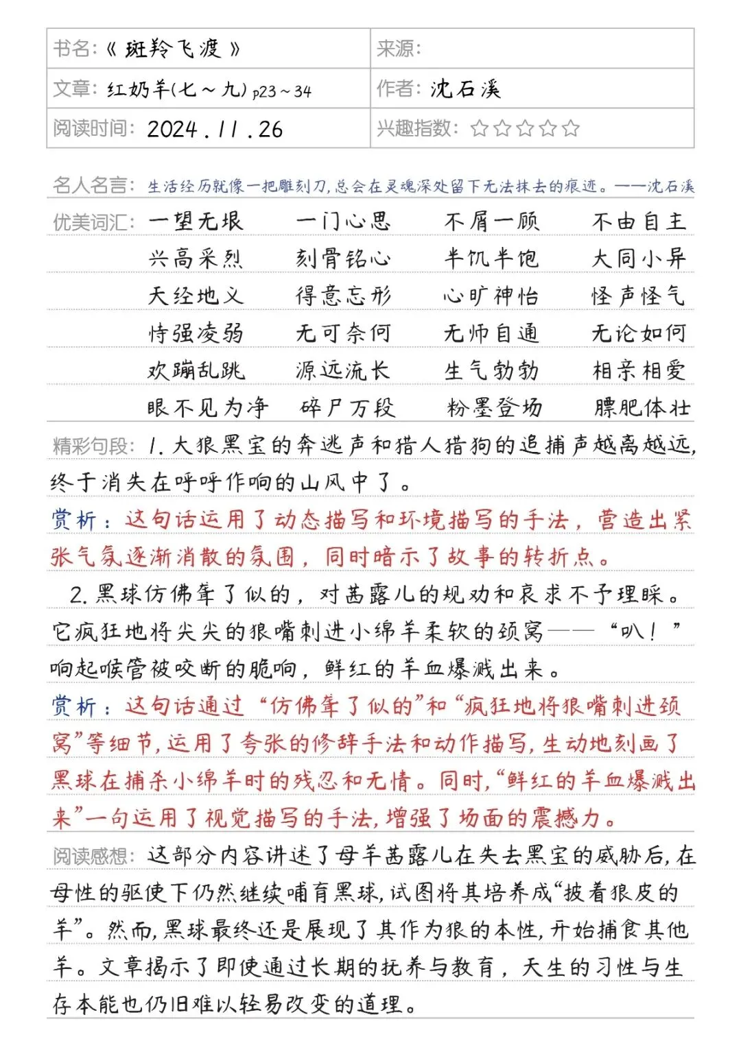 1. 好词(圈画摘抄):