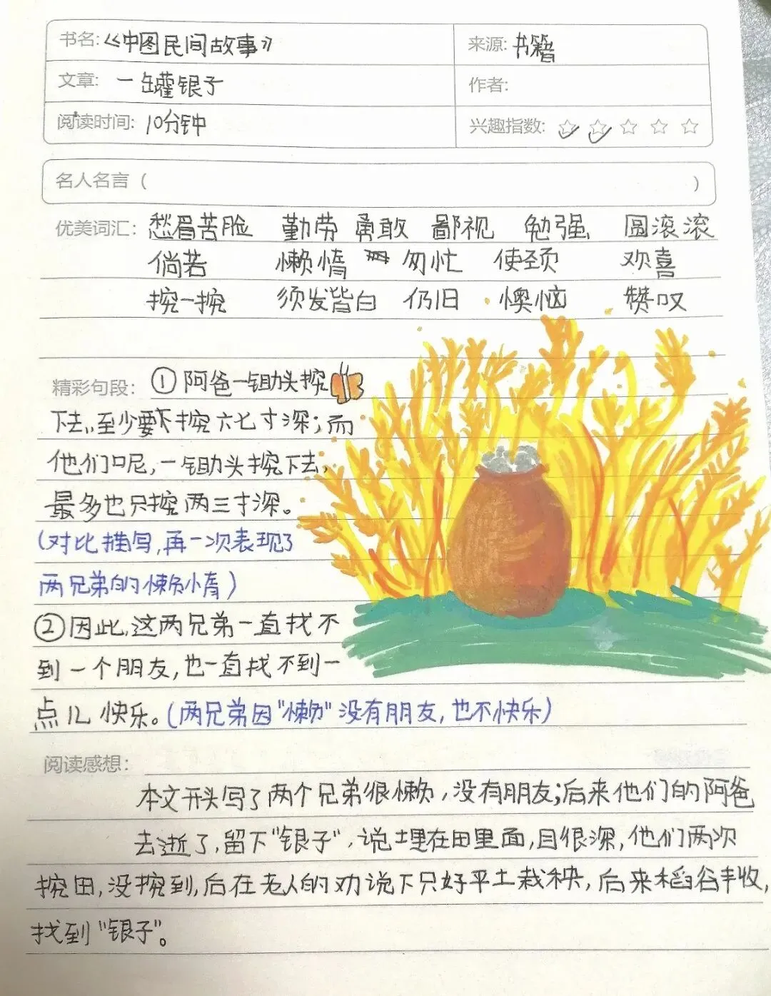 以《猎人海力布》为例,咱们一起看看规范的笔记怎么写: