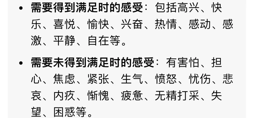 其实我清楚之前的心理学笔记都太过专业和系统,对于很多被困心理漩涡的人来说,可理解和执行的内容并不多。它们都是作为心理咨询师的我必读书籍,可这本书不同,即使你对心理学一窍不通,也可以从中找到改变自己的方向和行动指南。这本书并不厚,但只要你按书中的建议行动起来,一定受益匪浅。这并不是没有实践的妄语,而是我将书中的内容应用在咨询中后的感悟。来访者都明确的表达,他们感觉自己被深深的理解,甚至有人可以理解曾经无法谅解的事与人。作为心理咨询师的我,可以平心静气地看完全书。但如果,我幻想自己是一位亟待处理情绪、现状、心理问题的读者,我想我的阅读体验一定会像坐过山车一样,高起低落。此书开篇就是非暴力沟通的终极乐园 —— 由衷的给予,“我是来学习如何对自己好的,怎么一开始就要我付出呢”,我想这是读者的第一次低落。第2~6章就以总分的方法,将非暴力沟通的四大重点(观察、感受、需要、请求)一一展开,“终于有点实在的东西了,好像是有点作用”,我想这是读者的第一次兴奋。第7、8两章,作者建议读者带着这样的知识架构去同理他人,感受别人的需要和请求,“我都去感受别人了,那我自己呢?我就不重要嘛”,我想这是读者的第二次低落。第9、10两章,作者帮助读者利用新知识框架去同理自己,感受自己的需要和请求,“果然,我还是很重要的,我得先看向自己才能看向别人”,我想这是读者的第二次兴奋。最后四章都是作者非暴力沟通的实例,有的是化解冲突、有的是协助他人、有的是解放自我。从这些实例中,读者可以感受到一种勇气和希望,好像所有的问题都可以化解。低落时,我希望每一位读者都可以坚持住,并不是作者高高在上,不懂得你的痛苦,高谈阔论。我认为这是作者工作给他带来的语言上的习惯。他是一位调解大师、心理医生,他习惯用这些技巧去了解别人的需要和请求,于是创作时,并没有【总是】从第一视角去表达。只要你熬过前面的低落,后面的兴奋会让你豁然开朗的。美的东西值得多一点耐心。前面介绍了,非暴力沟通一共包含四个重点:观察、感受、需要和请求。说起来容易,要真正的领会和运用还挺难的。为什么这么说,因为每章末尾的模拟课题我都没有全对过,总要错几道。这两个的对比,有点类似事实和观点的对比。非暴力沟通推崇清晰且中立的表达出自己所看见的内容,不夹杂任何评价。无论讨厌还是喜欢,只说出对方做了什么,不能以道德评价、作比较、推卸责任等方式表达自己的观点。“昨天晚上,约翰无缘无故冲我发脾气。” VS “会议上我没有听见桑姆询问我的意见。”这两个的对比,有点类似情绪和观点的对比。如图片所示,书中关于个体的感受有一个简单的总结,不难发现它们很多都和情绪有关。表达感受和表达观察一样,最忌讳的就是夹杂评价,而克制评价却是我们最不擅长的。“听你那么说,我感到害怕。” VS “你为我做的那些事,我感觉很好。”说出自己的需要,听起来真简单,可事实上,我们更擅长掩藏自己的需要,主要通过两种方法:指责自己、指责对方。没有人喜欢批评的语言,但的确有人非常擅长处理批评,因为他可以从批评的语言中找出对方的需要,和对方建立情感上的联系。同理,对自己的需要非常清晰的人,也很少自我批评,他们只会尽力满足自己的需要。书中也罗列了一些常见需要,大家可以结合马斯洛的需要层次理论一起看。每个人都要对自己的需要负责,而不是妄想别人熟知且为我的需要负责。“我感到挫败,因为我原本希望这件事情能够进展得更快些。” VS “我感到失望,因为你没有做你答应我的事情。”请求与要求最大的区别就是,是否允许拒绝。我们习惯认为不答应请求就会受到责罚,或者答应请求就是对自我的背叛,其实无论答应还是拒绝,其只是代表背后不同的需求。
