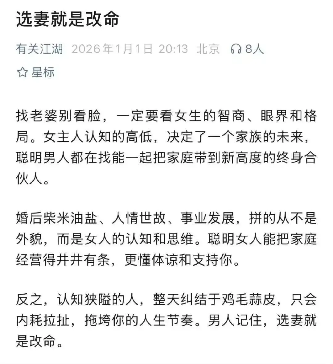 男人记住,选妻就是改命。