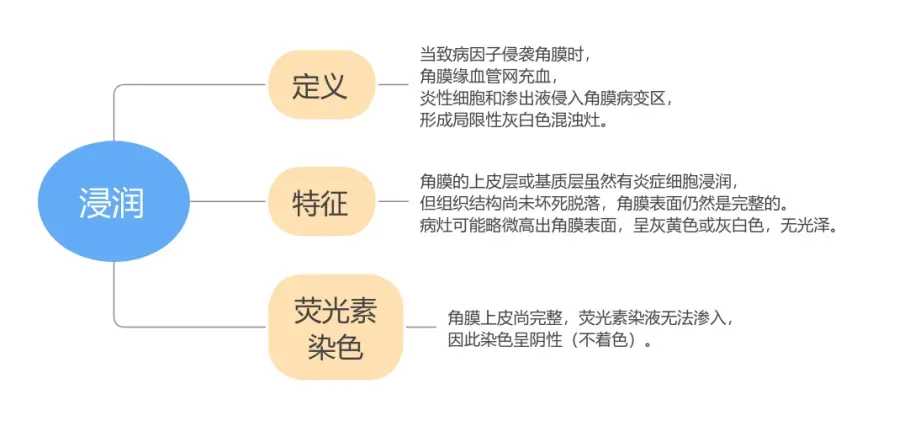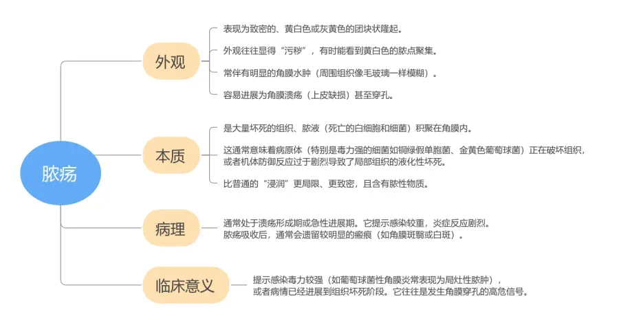 3)伴有角膜基质水肿浸润,随病情进展可迅速发展至角膜深基质层,形成脓疡,甚至侵犯角膜后弹力层和内皮层,导致角膜穿孔。
