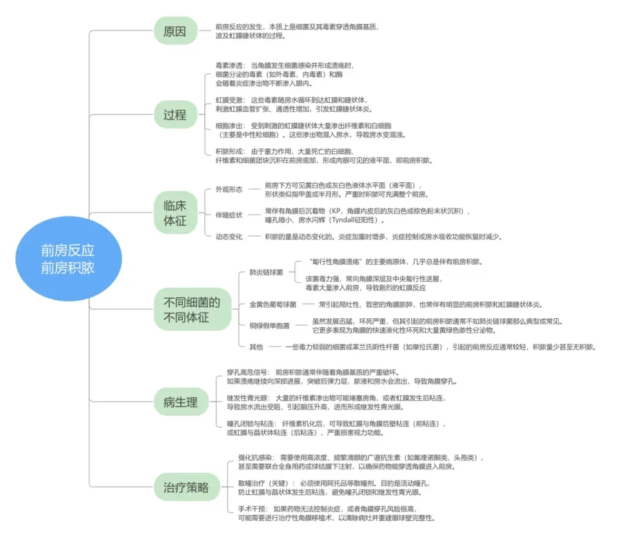 问:细菌性角膜炎发病过程中,角膜水肿、浸润、溃疡、脓疡、前房反应或前房积脓的发生机制和影响?