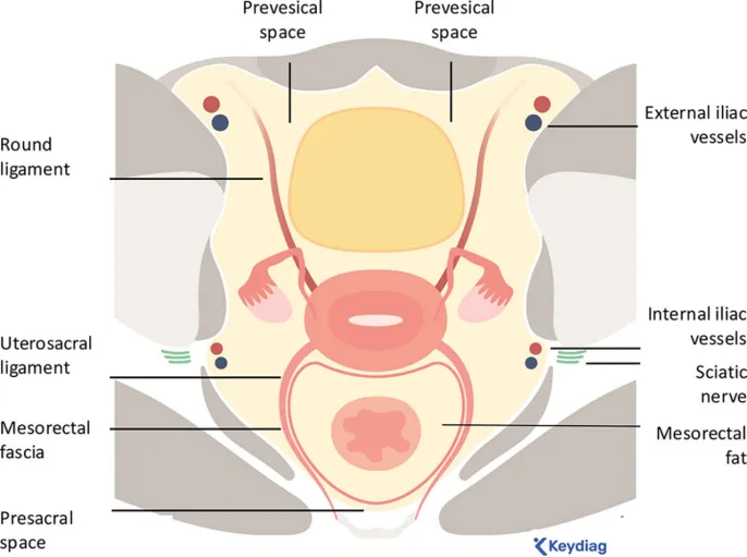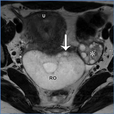 同时,掌握女性盆腔的解剖结构知识也必不可少 —— 高分辨率多平面 T2 加权成像序列是显示盆腔解剖结构的最佳方式。
