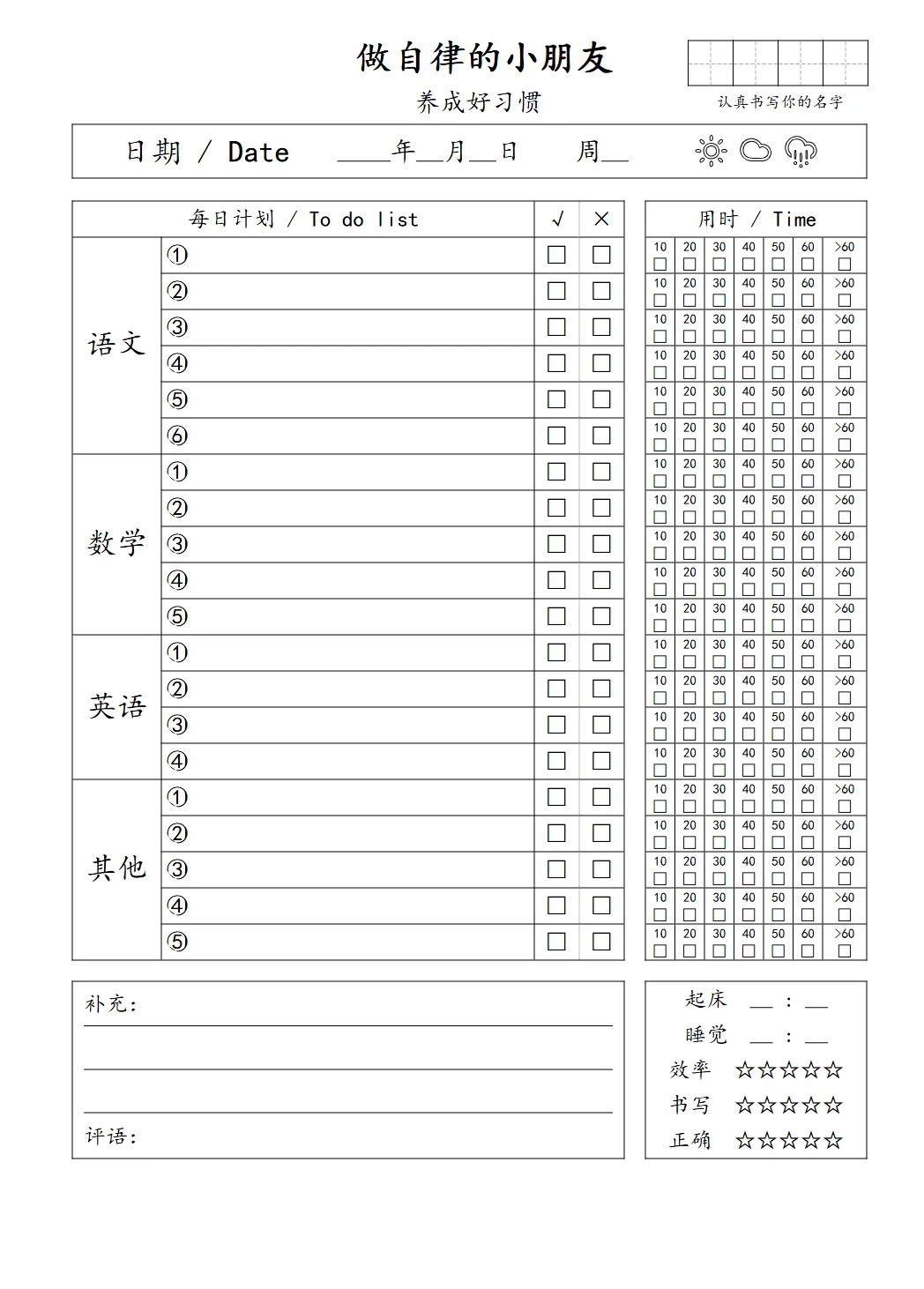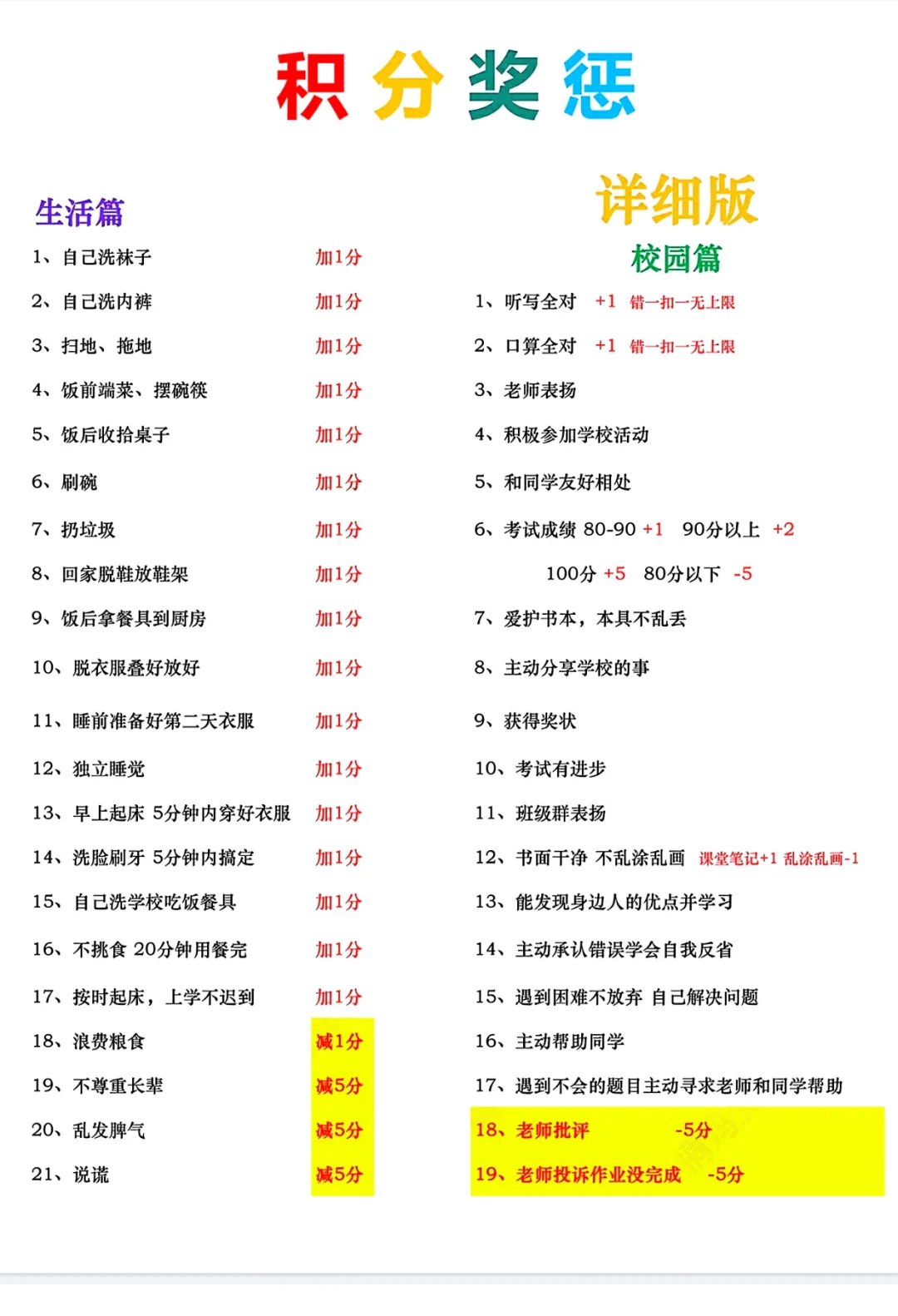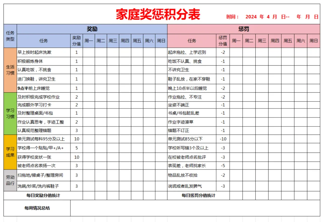 小学学习资料|家庭奖惩积分表、学霸养成、积分兑换表(高清下载打印)