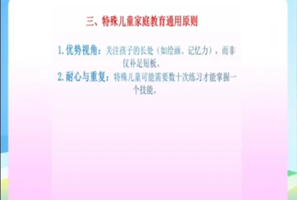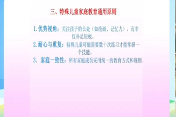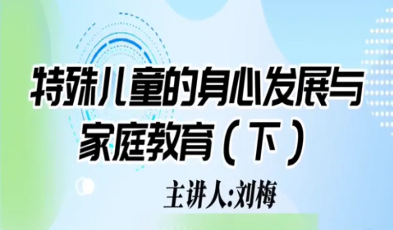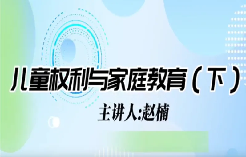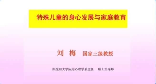 今天学习第十五课时《特殊儿童的身心发展与家庭教育》和第十六课时《儿童权利与家庭教育》。主讲人分别是辽宁省家庭教育学会理事、沈阳大学师范学院应用心理学系原主任教授刘梅;辽宁省家庭教育学会理事、沈阳大学社会工作系主任、副教授赵楠。