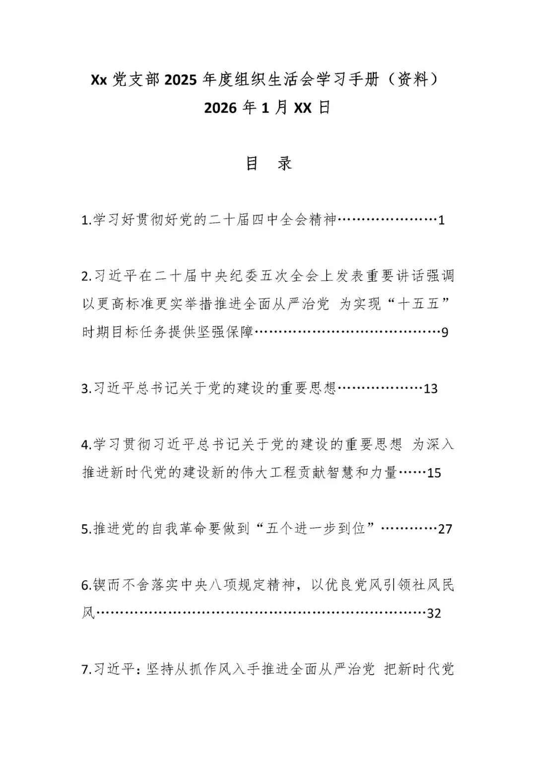 >Xx党支部2025年度组织生活会学习手册(资料)