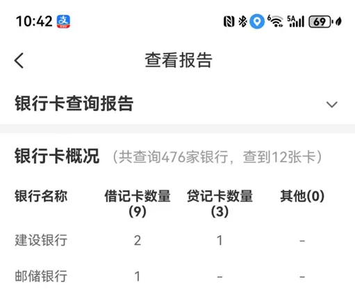 →查看报告,输入密码后查看所有借记卡(储蓄)、贷记卡(信用), 过期后无法查看,3天之内只能查询一次。