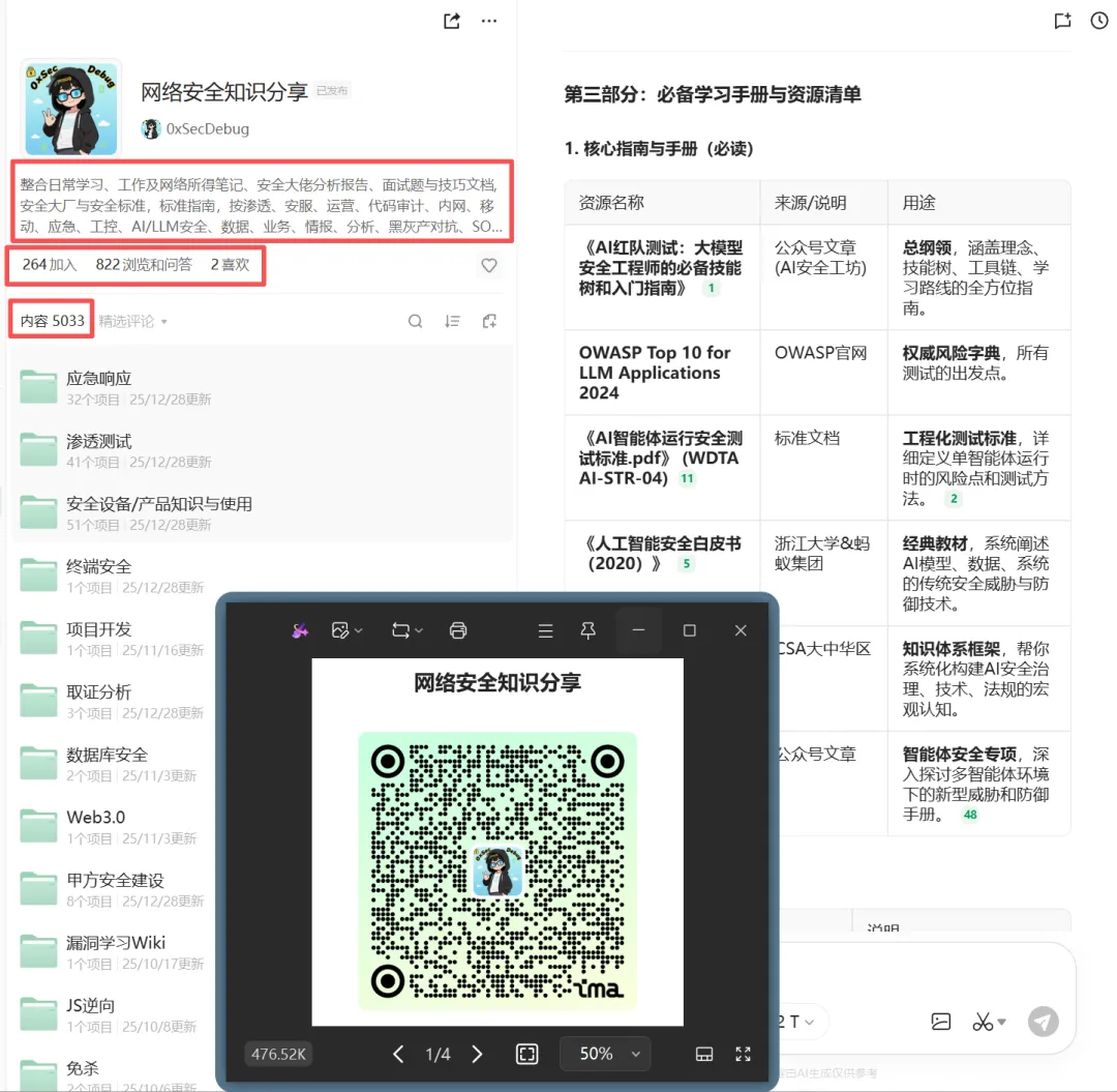 https://book.yunzhan365.com/umta/rtnp/mobile/index.html 网络安全科普小册子http://sec.cuc.edu.cn/huangwei/textbook/ns/ 网络安全电子版教材。中传信安课程网站https://mitre.github.io/attack-navigator/enterprise/ mitre 机构 att&ck 入侵检测条目https://github.com/danielmiessler/SecLists 表类型包括用户名,密码,URL,敏感数据模式,模糊测试负载,Web shell 等https://github.com/GitGuardian/APISecurityBestPractices api 接口测试 checklisthttps://github.com/ym2011/SecurityManagement 分享在建设安全管理体系、ISO27001、等级保护、安全评审过程中的点点滴滴https://mp.weixin.qq.com/s/O36e0gl4cs0ErQPsb5L68Q 区块链,以太坊智能合约审计 CheckListhttps://github.com/slowmist/eos-bp-nodes-security-checklist 区块链,EOS bp nodes security checklist(EOS 超级节点安全执行指南)更多信息在向项目中........