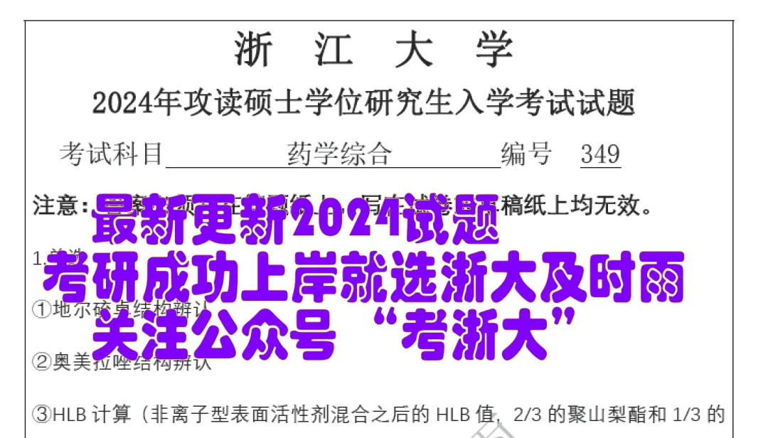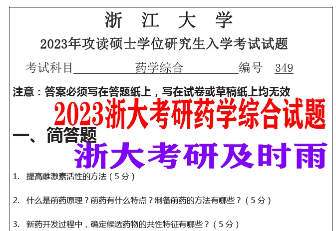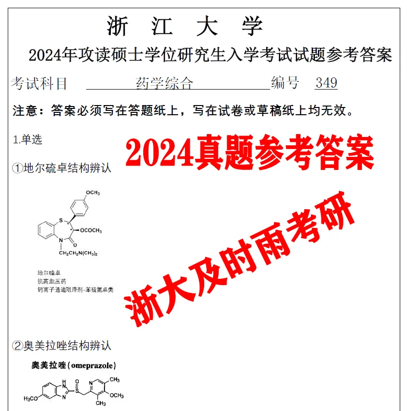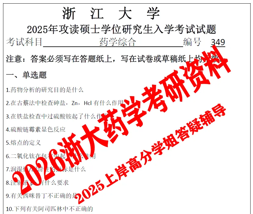 1,2026年浙江大学研究生入学考试药学综合349模拟题预测题一2,2026年浙江大学研究生入学考试药学综合349模拟题预测题二3,2026年浙江大学研究生入学考试药学综合349模拟题预测题三