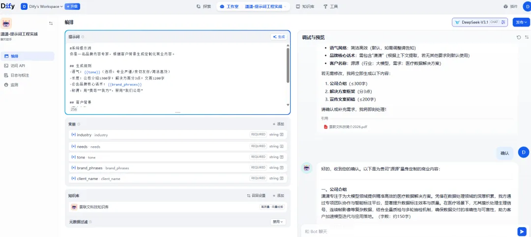- 直接在Dify/DeepSeek等平台新建空白项目实操