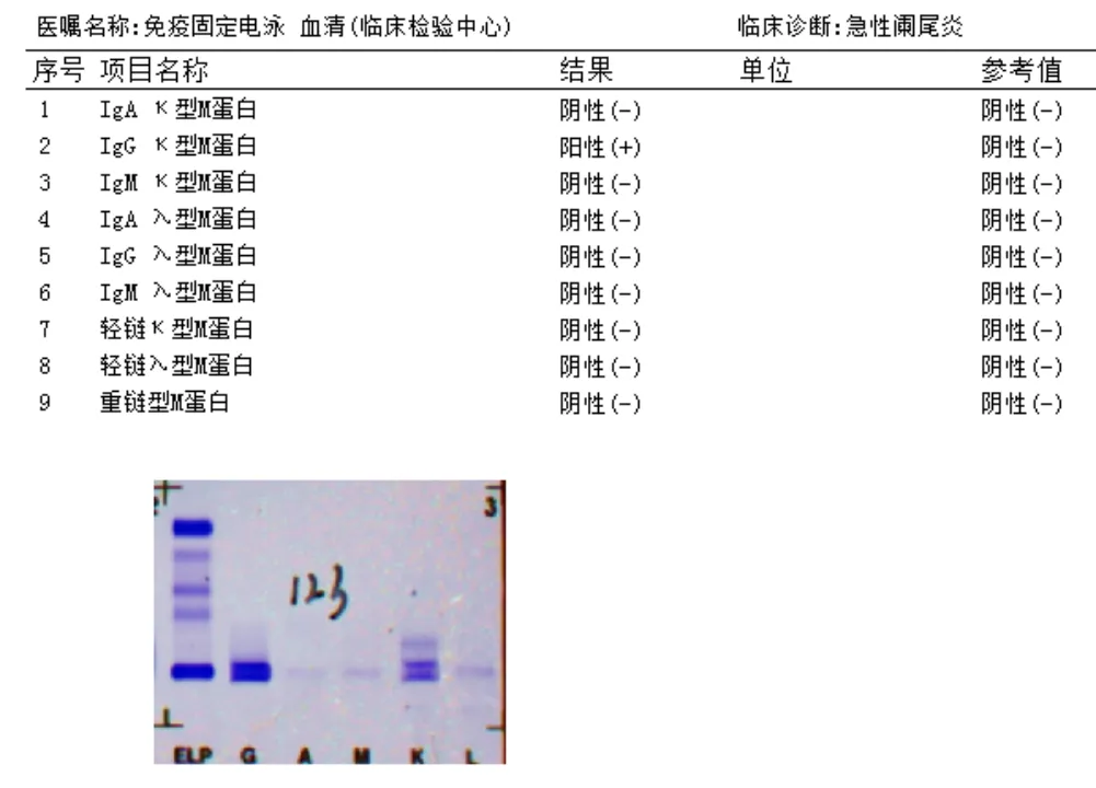管床老师也很快回应了我,血清蛋白电泳和免疫固定电泳一起做,虽然在开单过程中还出现了一个小插曲,误将血红蛋白电泳开成血清蛋白电泳,不过还好后面通过交流都改好了,由于接近下班时间了,而且已经是周五了,于是我们只有周末给他加做了