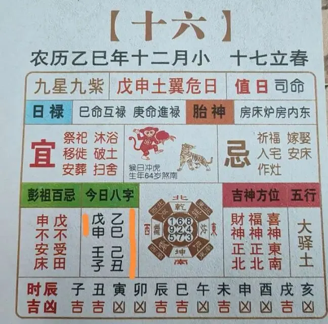 值得庆幸并同样要强调的一点是,年、月的分界分别要对应二十四节气,但日柱只遵循“60甲子”的周而复始,并不随二十四节气变化而变化。如:2026年2月3日的日柱是戊申,2026年2月4日的日柱是已酉,并不因年柱与月柱的改变而改变。这正是生活常态的表现,无论趋势怎么变,一天天地踏实生活努力工作,是我们小老百姓的人生。过好当下,循序前行,同样是藏在老黄历“八字”里的智慧。