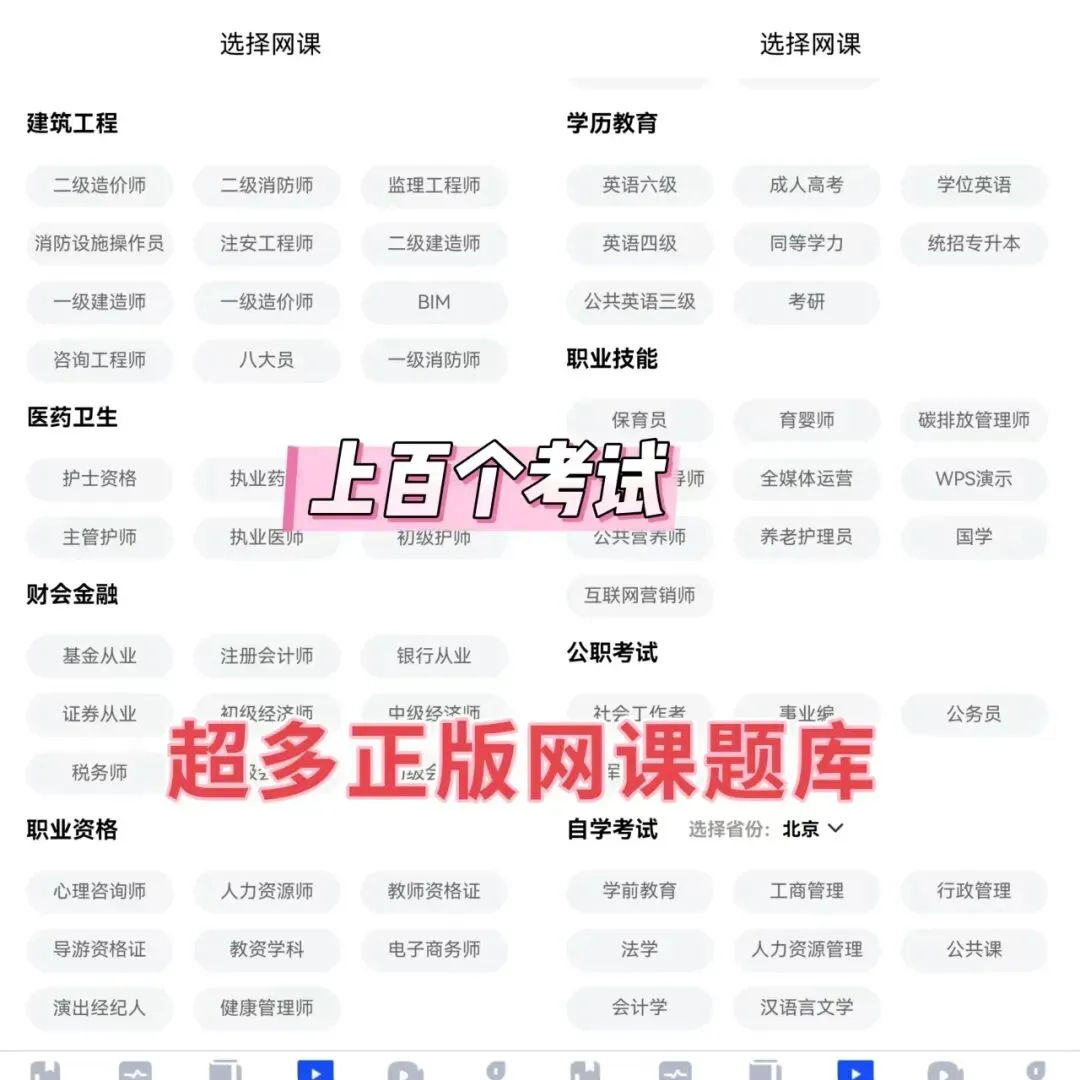 - • 覆盖范围够广! 市面上那些热门的、主流的考试领域,题库和课程基本都给你‘配齐’了,满足大部分客户需求稳稳的。