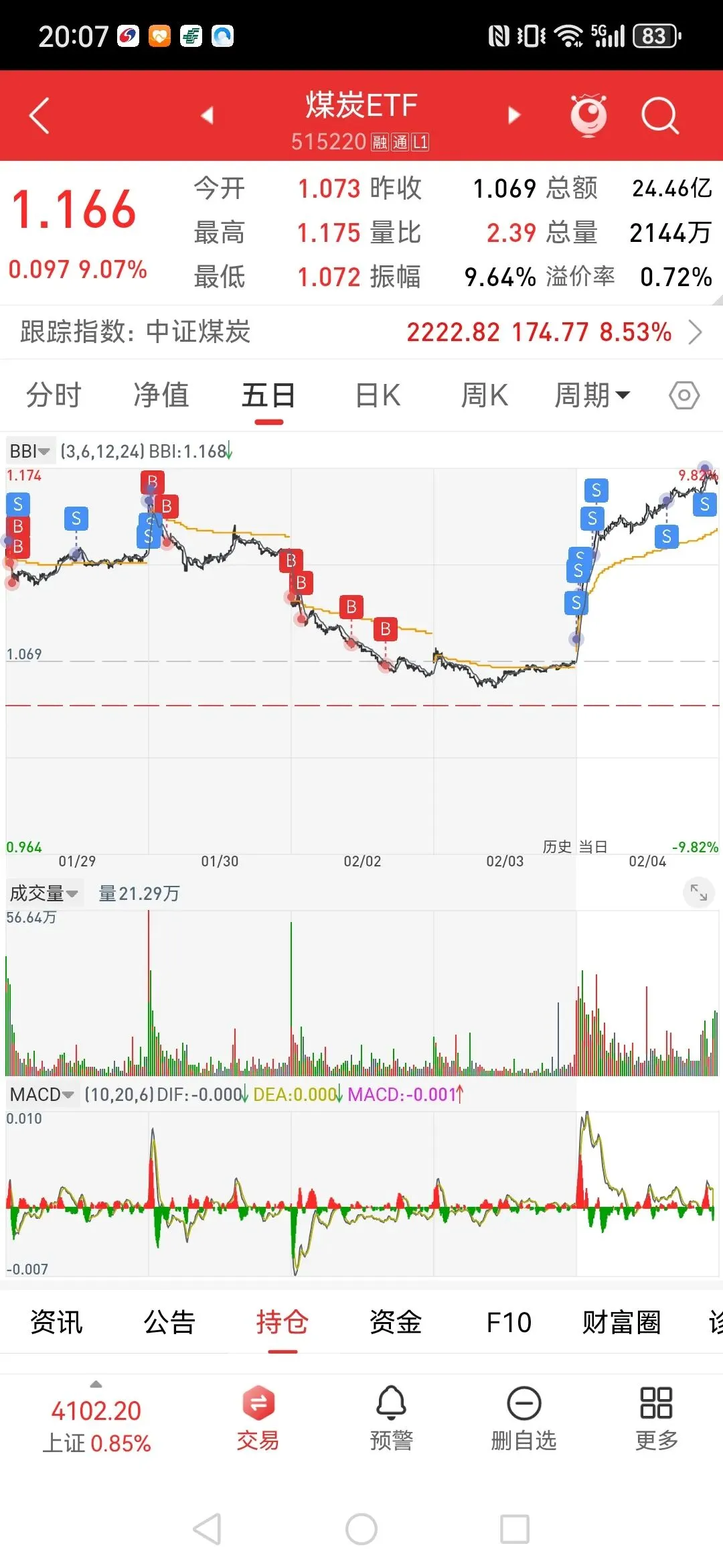 1、昨天煤炭急杀,把原来的上涨趋势按了暂停键,网格吃了一肚子的货,我跟朋友开玩笑,会不会消化不良哦。今天直接反包,差点涨停,然后网格不停地卖,老师说过,下跌你不买,上涨你拿什么卖。由于降低了每笔成交额,底仓未动,吃到了一根大阳线。机会都是跌出来的,风险都是涨上来的。