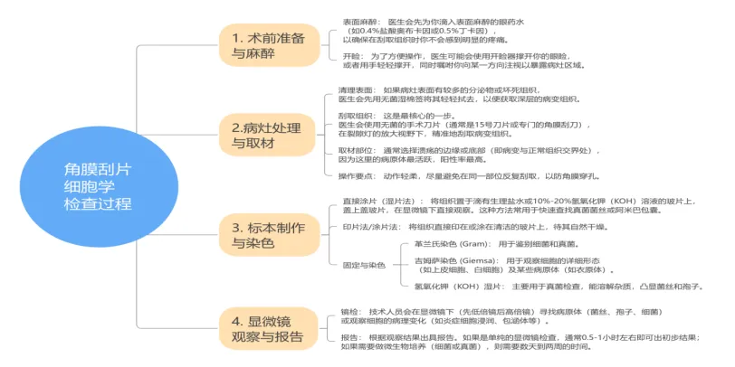 1.角膜刮片细胞学检查:推荐使用灭菌角膜刮铲或15 号刀片行床旁取材,刮取病灶表面、基底部及病变进展缘组织。对于角膜已穿孔或存在穿孔风险的病灶,必要时可在病灶边缘取材。对于脓性分泌物较多的病灶,推荐采用拭子擦取表面分泌物及基底部脓性坏死组织。对于深层或既往培养阴性的病灶,必要时可行角膜活体组织检查。