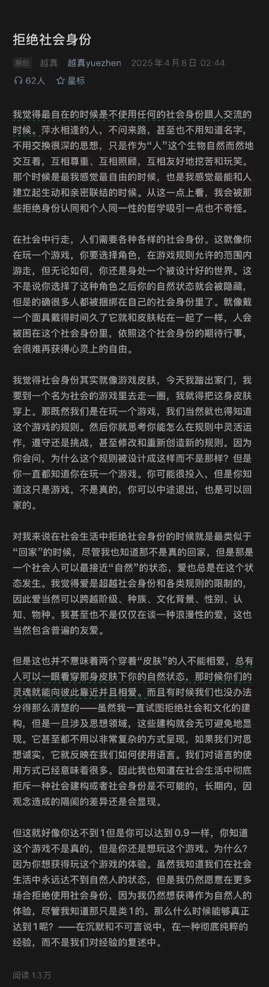 有时候忍不住怀疑,一个人在线下说的话,怎么可以和在线上说的话差那么多呢,与此同时,他心里实际相信的,和会讲出来的,可以差那么多吗?我好奇的只是,这样的人自己意识得到吗?他能意识到自己表里不一、言行不一却声嘶力竭地或委屈可怜地表现合一吗?有时候我觉得他们心里清楚得很,却还是可以不迟疑一秒就撒谎,不是有意撒谎,而是自己都骗信了。有时候我甚至愿意相信他们只是没意识到。