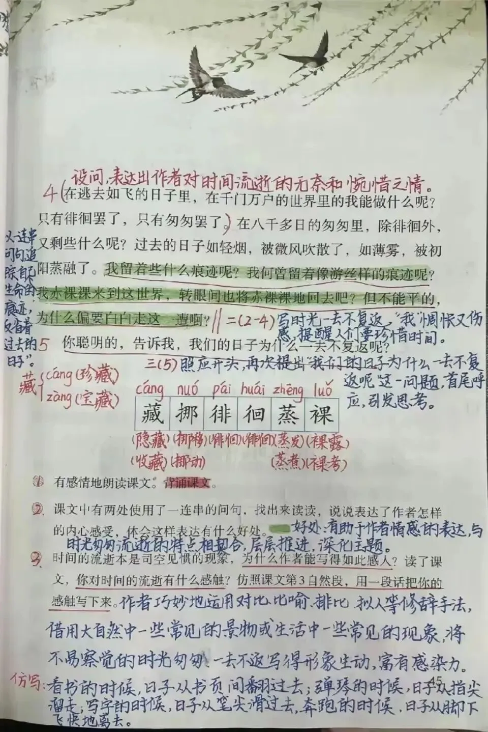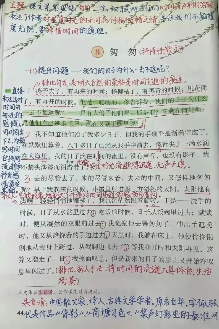 文章紧紧围绕着“匆匆”二字,细腻地刻画了时间流逝的踪迹,表达了作者对时间流逝的无奈和惋惜。提醒我们:时光在不知不觉中就会溜走,要珍惜分分秒秒,不要虚度光阴。