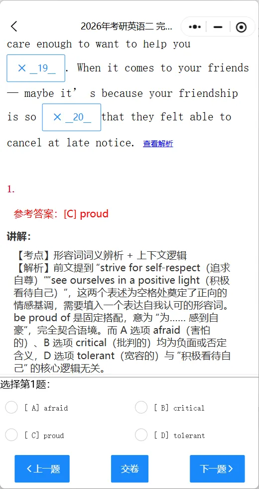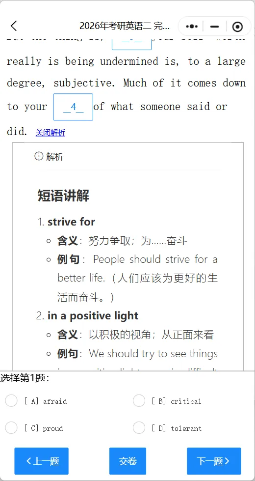 >历年考研英语真题完型填空