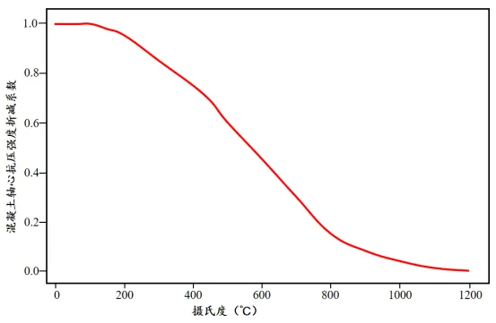 图3 混凝土轴心抗压强度折减系数随温度变化曲线